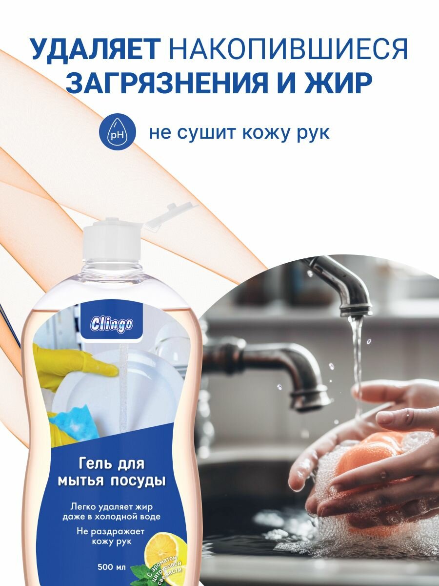 Гель для мытья посуды Clingo с ароматом цитрусовой свежести, 500 мл информация: