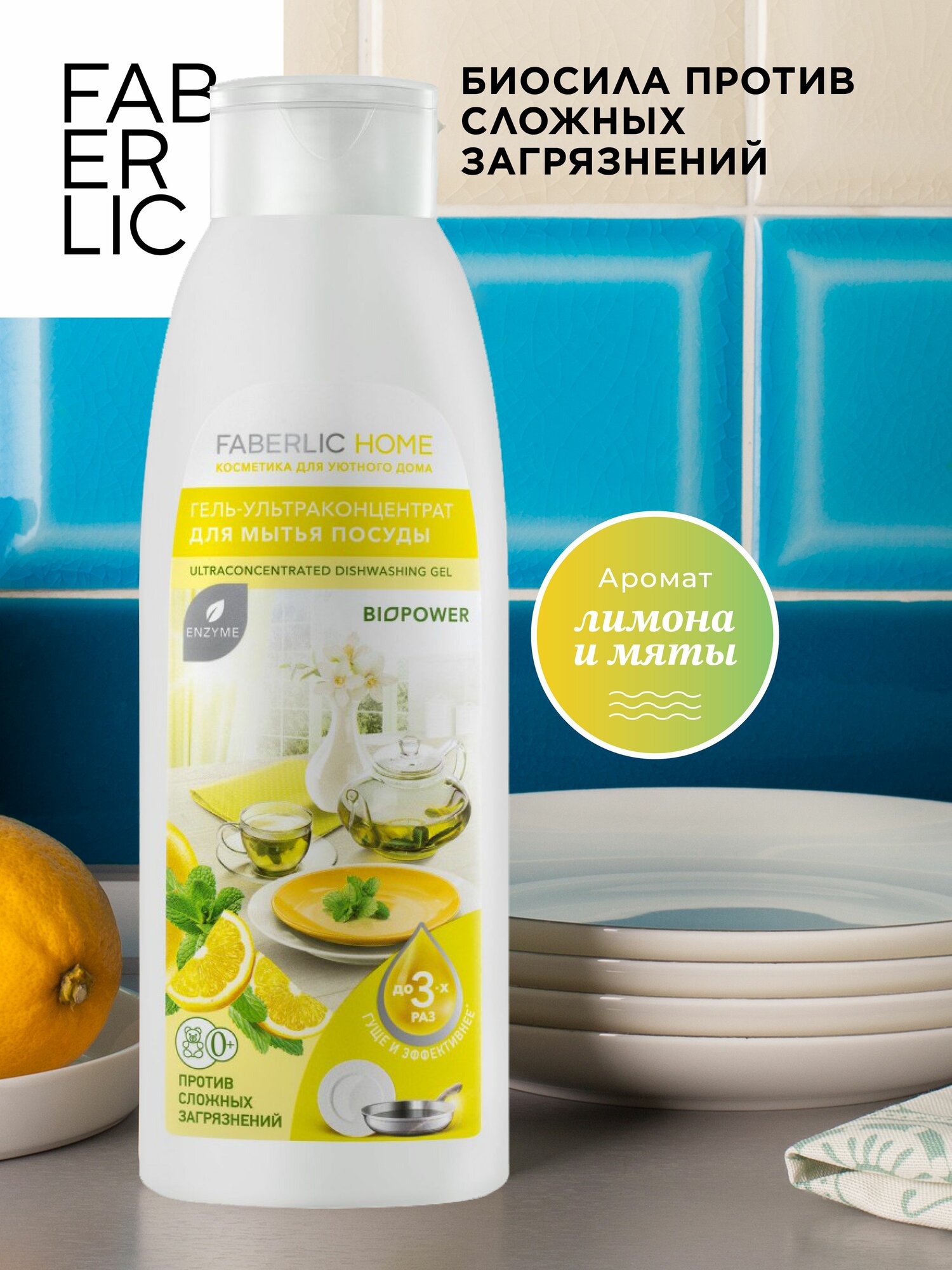 10 цен на Faberlic Гель для мытья посуды, ультраконцентрат, с биоэнзимами "Лимон и мята" Faberlic Home, средство для мытья посуды Фаберлик, 500 мл