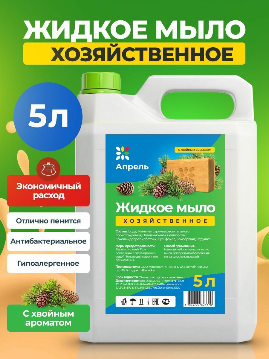 Мыло жидкое хозяйственное Опрель, с хвойным ароматом, гипоалергенное, 5 л информация: