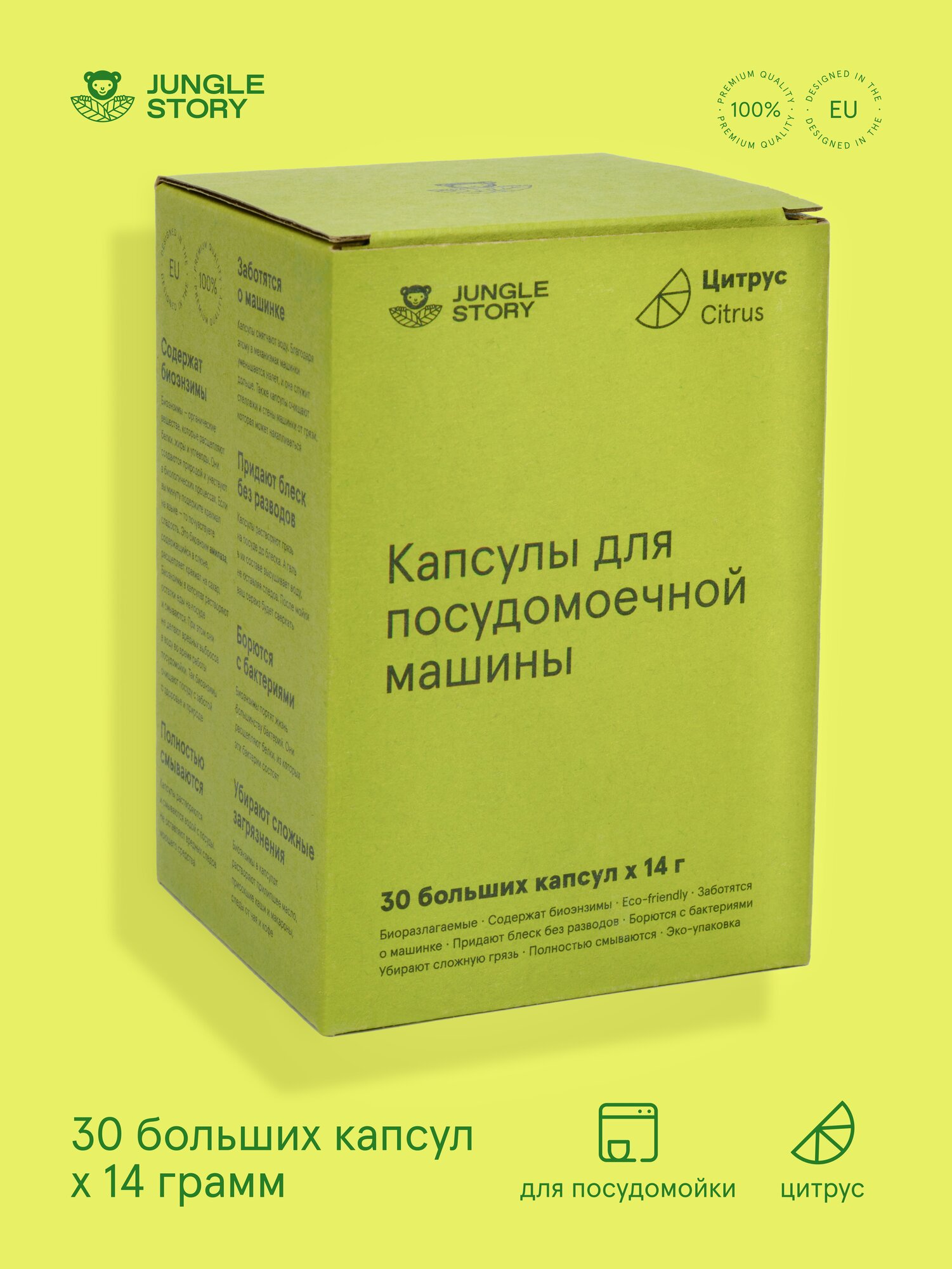 10 цен на Капсулы для посудомойки Jungle Story Citrus, биоразлагаемые, 30 штук