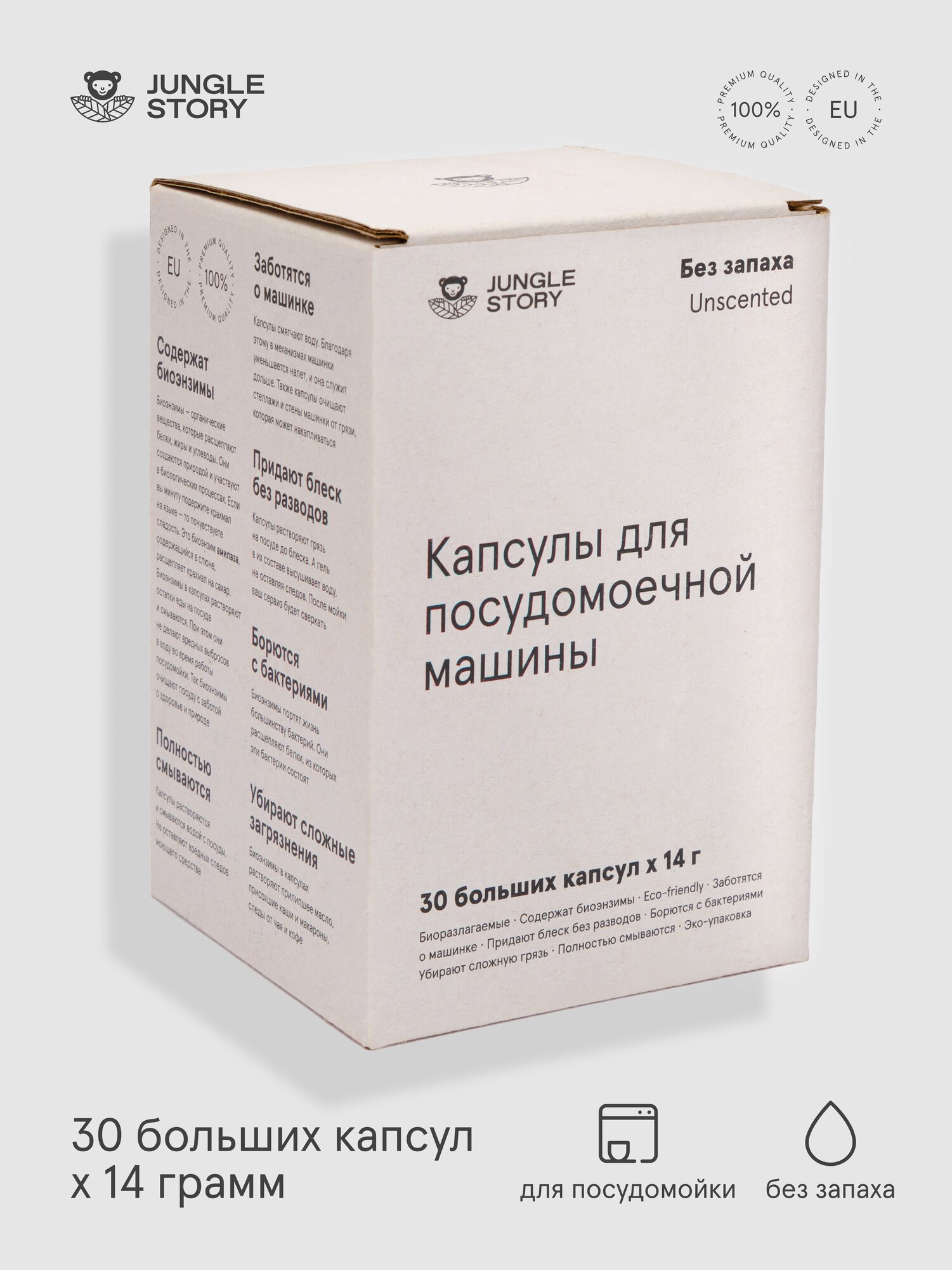 Капсулы для посудомойки Jungle Story, биоразлагаемые, без запаха, 30 штук, 14 г информация: