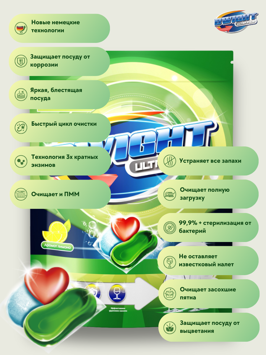 Капсулы для посудомоечной машины Дуайт 50 шт, стерилизующие и противонакипные, 100% биоразлагаемые информация: