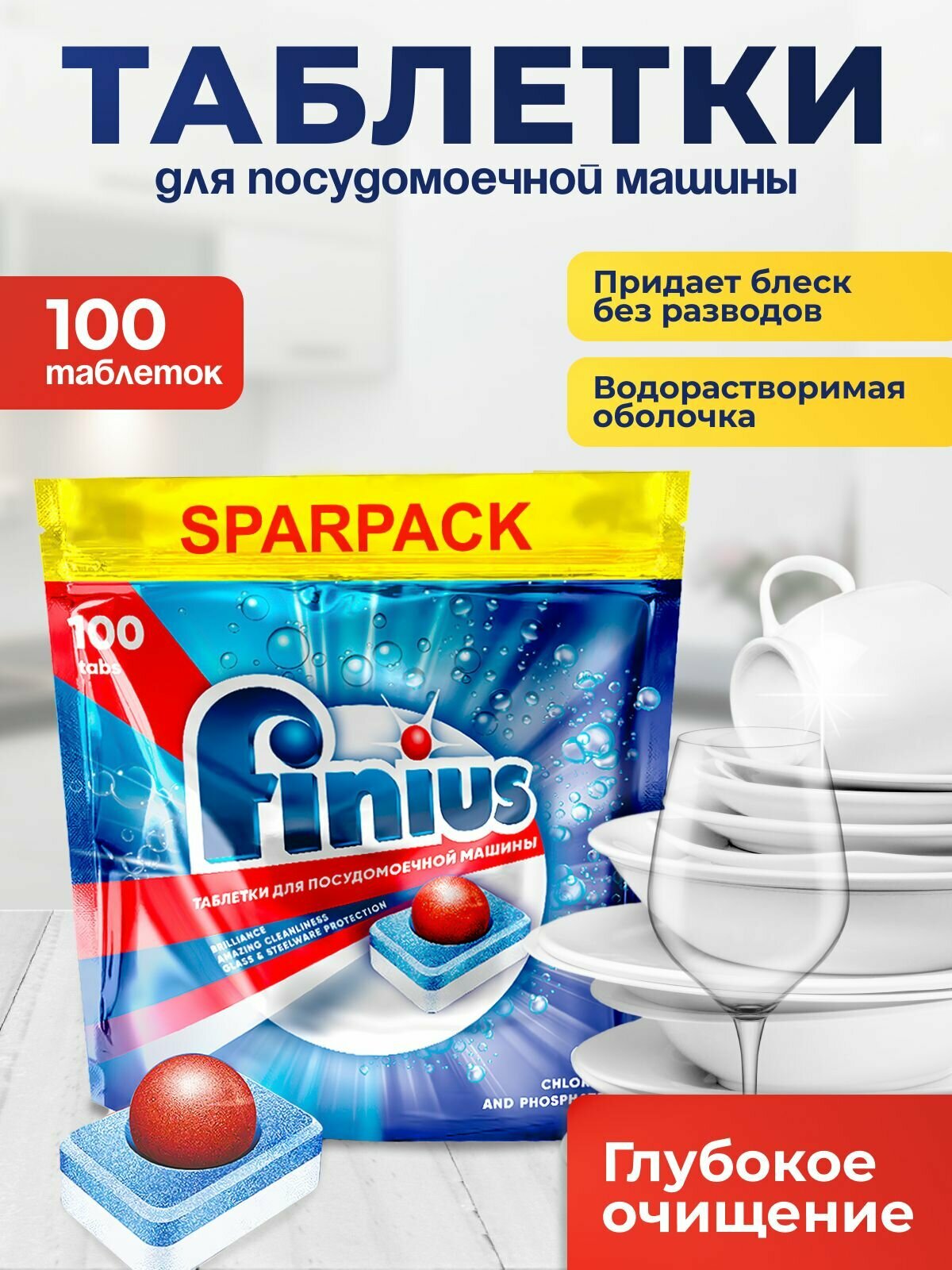 Таблетки для посудомоечной машины FINIUS, 100шт, антибактериальный эффект информация: