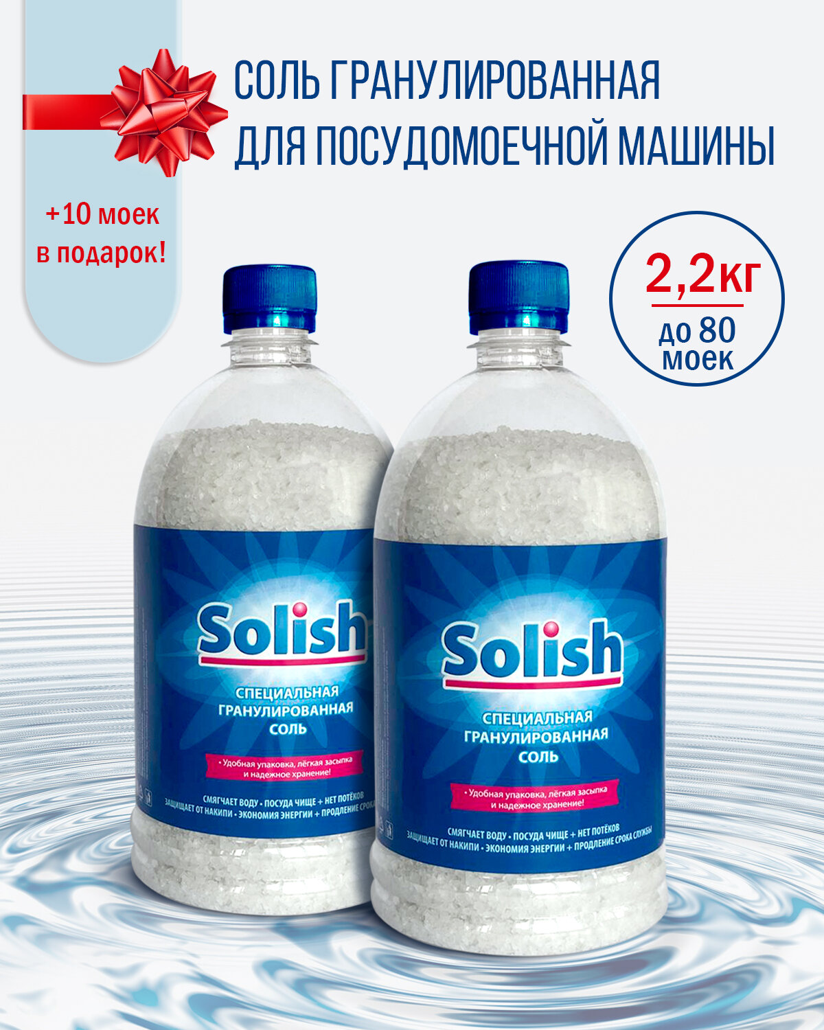 Соль для посудомоечной машины Solish, 2.2кг (1.1кг х 2уп.) / Соль гранулированная для посудомоечных машин / Средство для пмм информация: