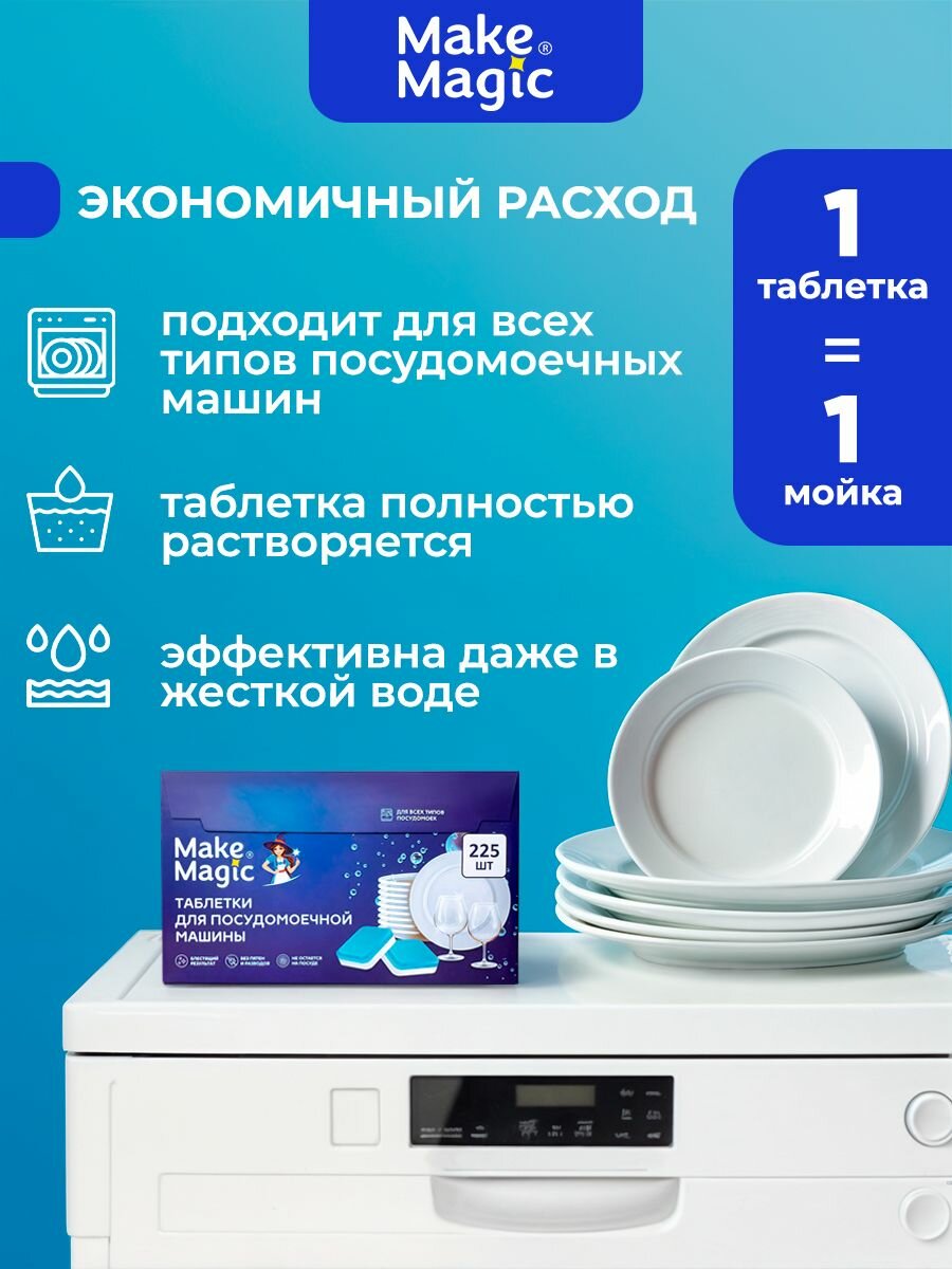 Таблетки для посудомоечной машины Make Magic, для всех типов посудомоек, 225 шт. информация: