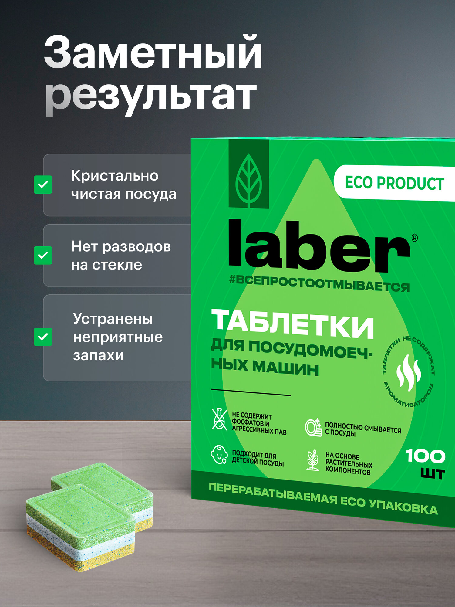 Таблетки для посудомоечной машины Laber ECO 100 штук / Средство для мытья посуды информация: