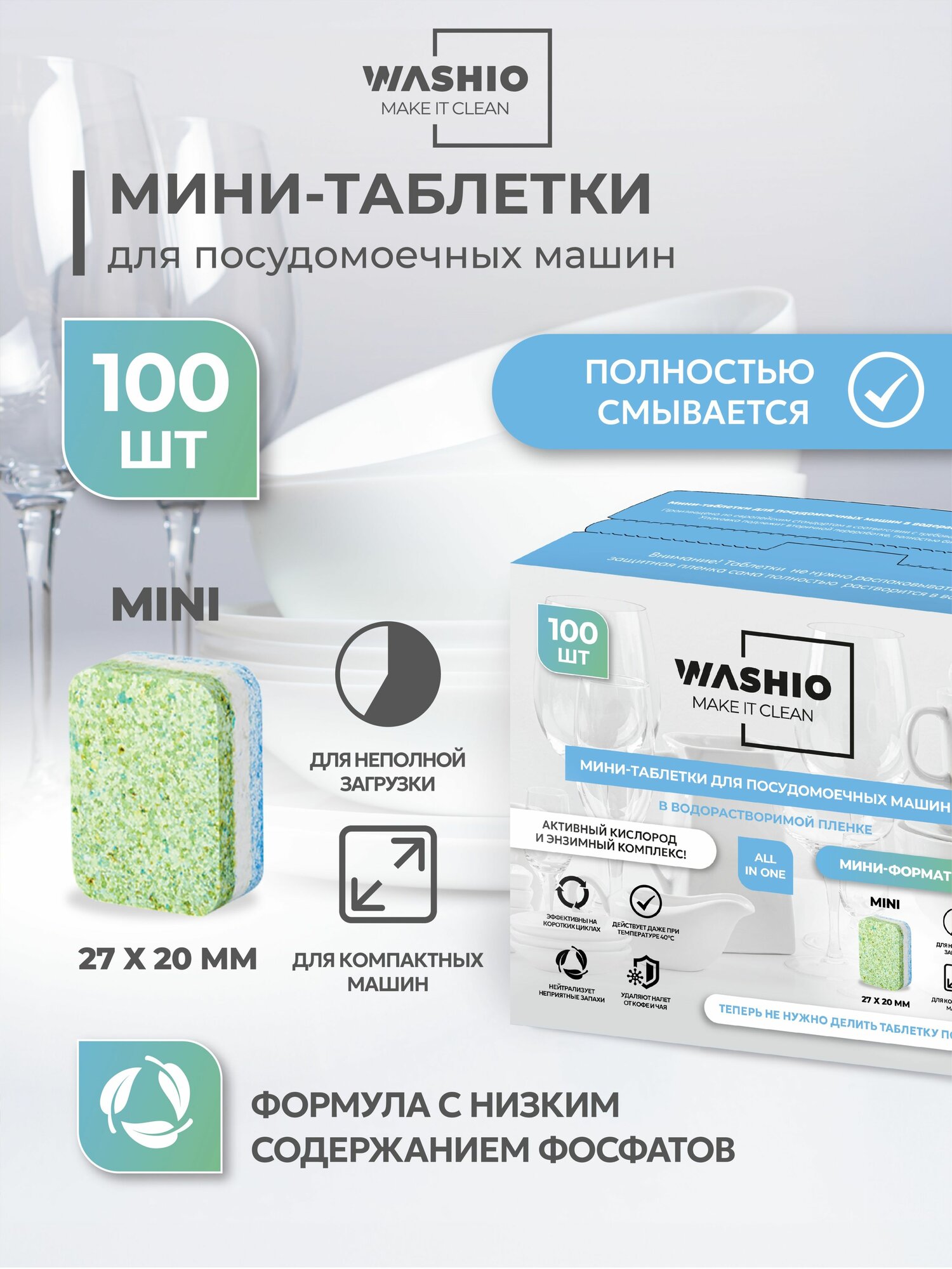 Мини-таблетки для посудомоечных машин Washio 100 шт. информация: