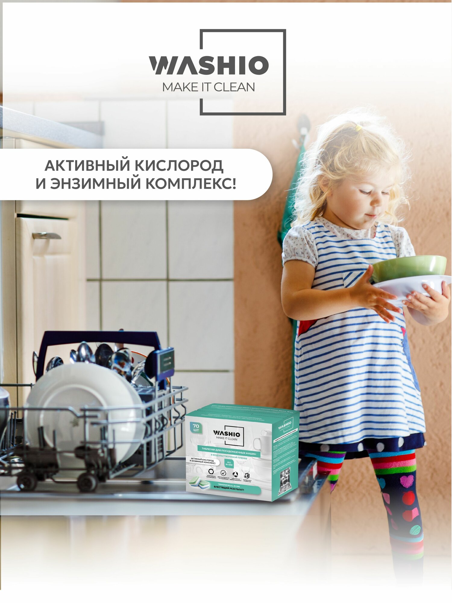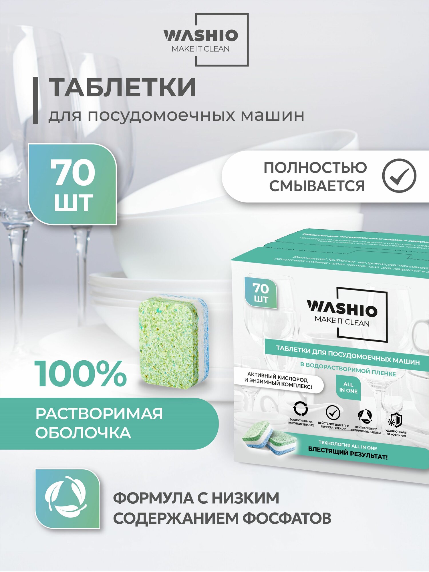 Таблетки для посудомоечных машин в водорастворимой пленке Washio 70 шт. информация: