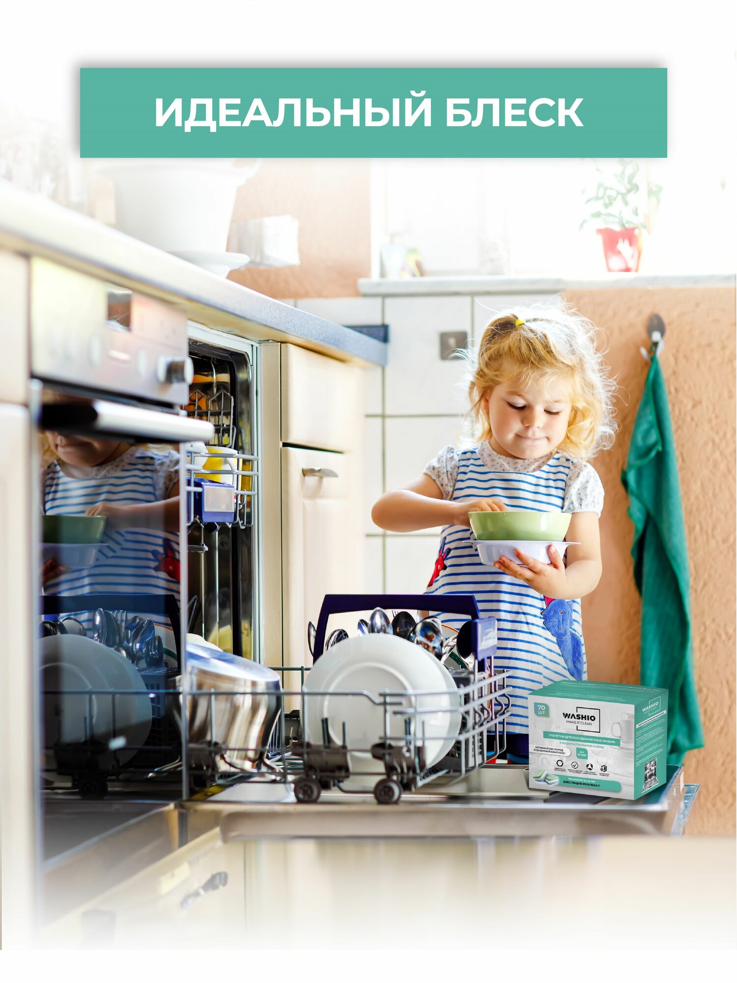 10 цен на Таблетки для посудомоечных машин в водорастворимой пленке Washio 70 шт.