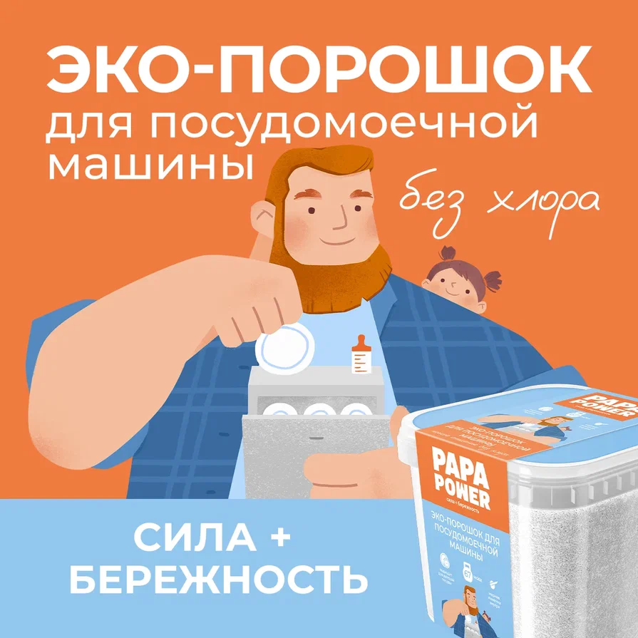 Отзывы на Порошок Papa Power для посудомоечных машин ЭКО 1320 г пластиковый контейнер