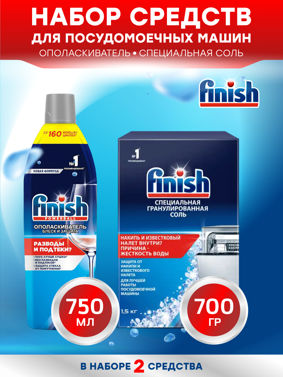 10 цен на Набор финиш для посудомоечной машины Соль 700 гр. + Ополаскиватель 750 мл.