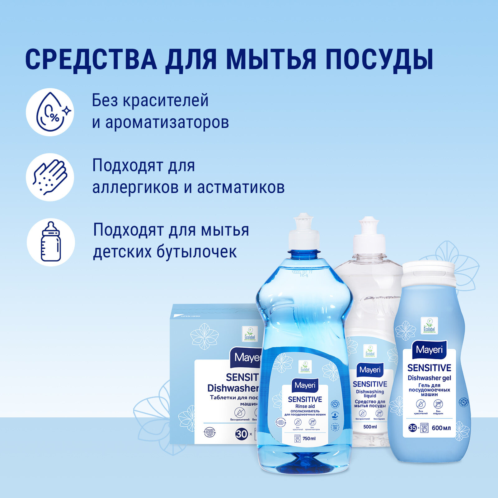 Ополаскиватель для посудомоечной машины Mayeri Sensitive, эко средство для мытья посуды, 750 мл информация: