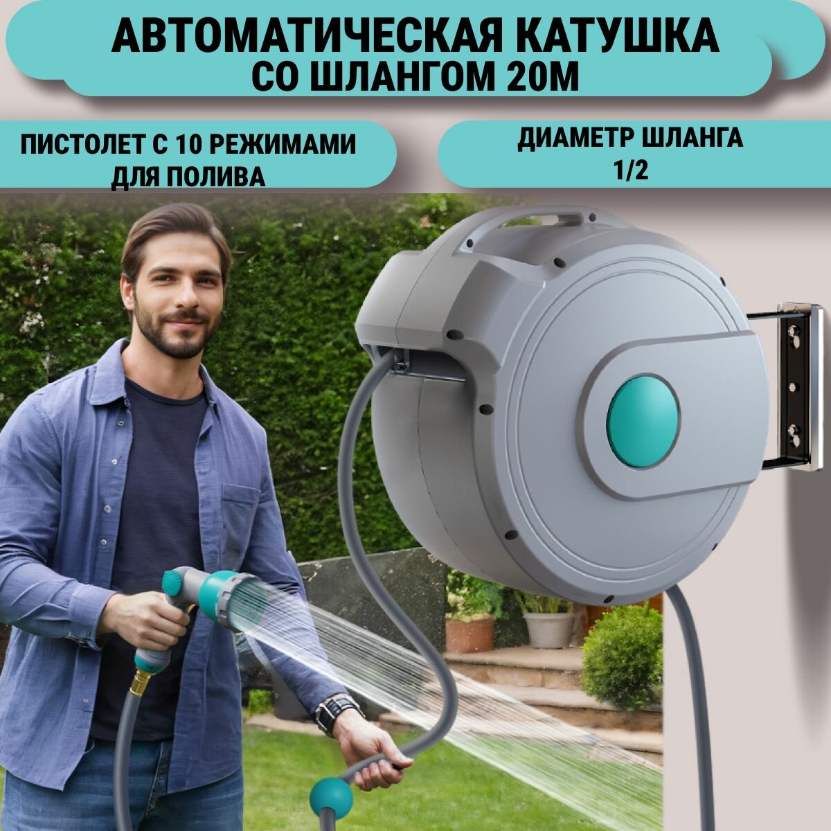 10 цен на Катушка автоматическая со шлангом 20 м + пистолет и фитинги