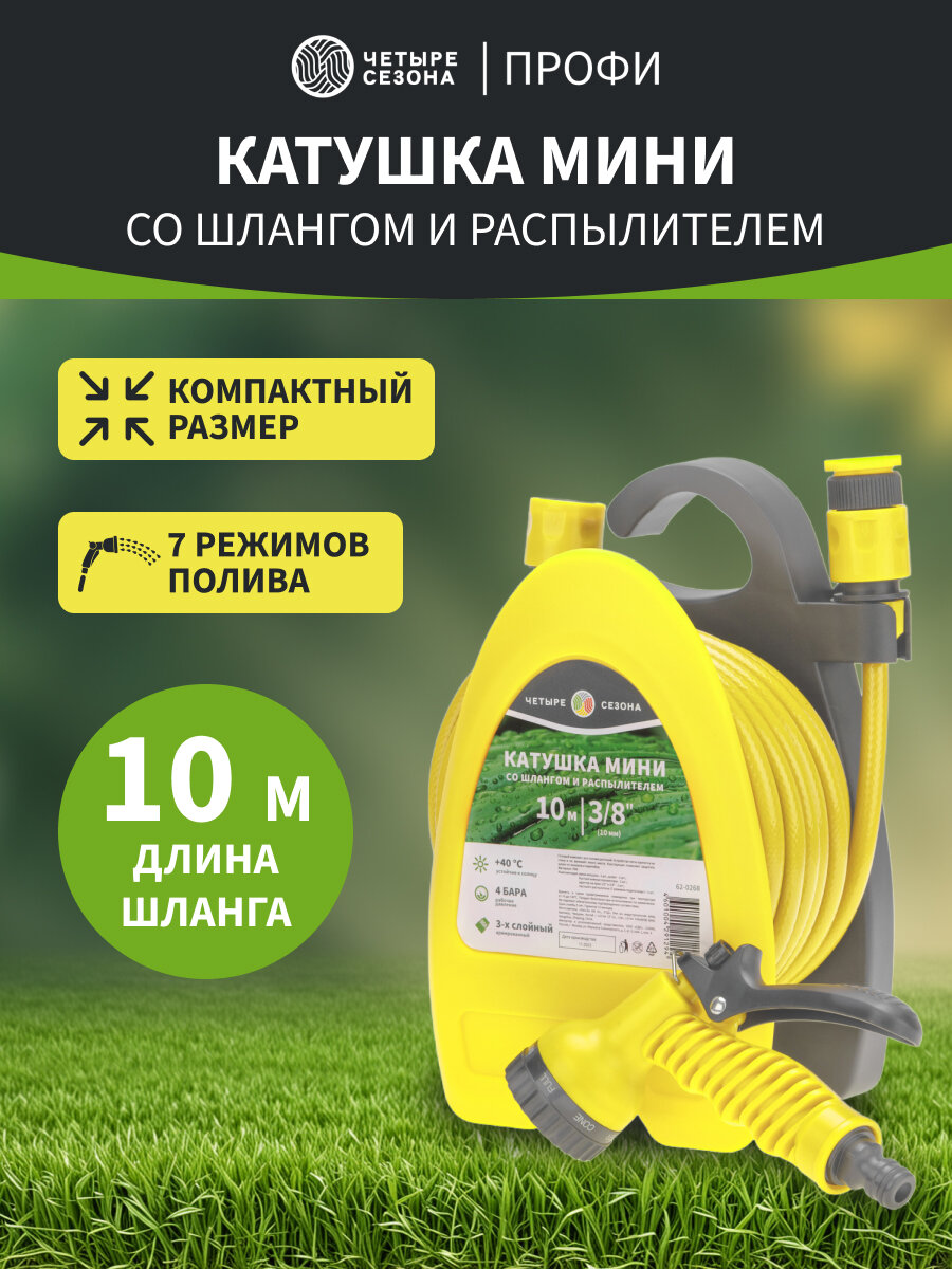 Катушка со шлангом ЧЕТЫРЕ СЕЗОНА 10 м, 10 мм, пистолет-распылитель информация: