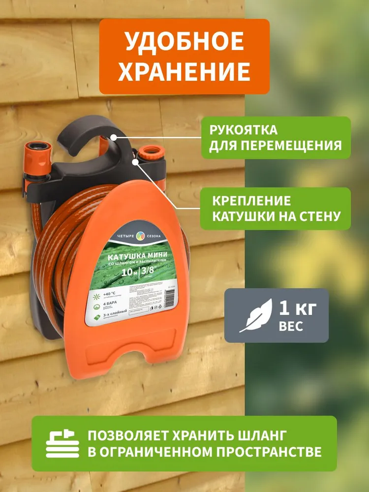 10 цен на Катушка мини со шлангом Четыре сезона 10мм, 10м, пистолет-распылитель