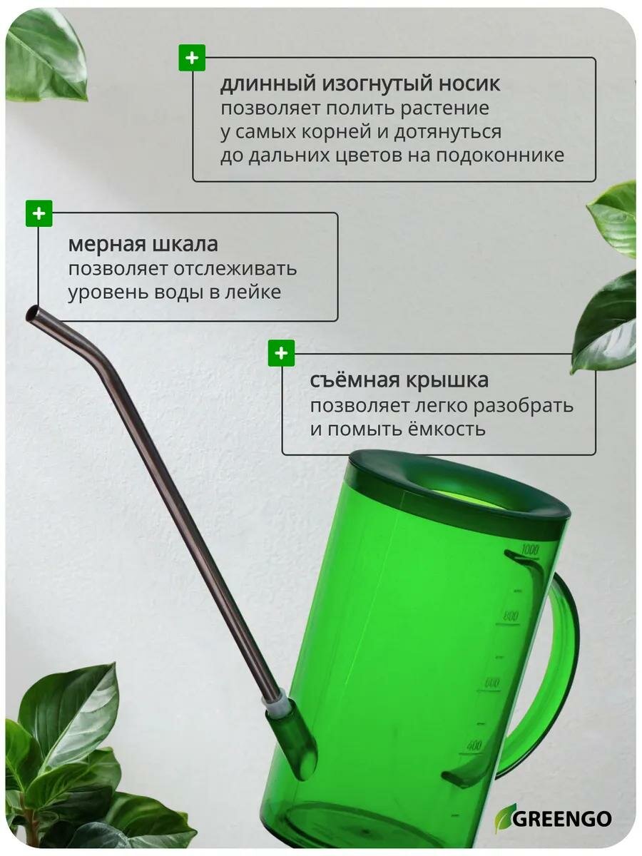 10 цен на Лейка для комнатных растений, 1 л, без рассеивателя, зелёная, Greengo