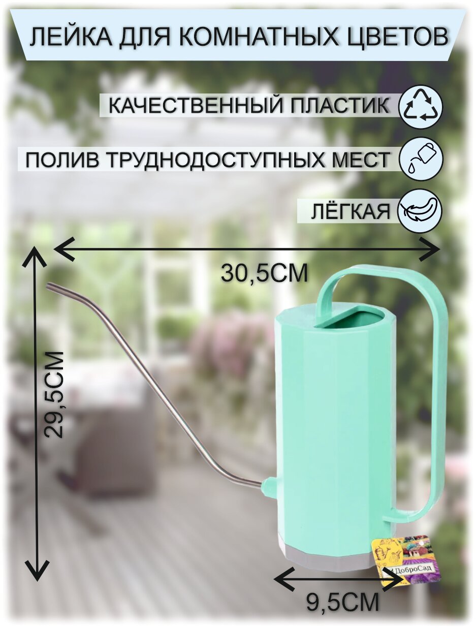 Лейка для цветов и комнатных растений "Виктория" 1,2 литра, с прикорневым поливом, ментоловая информация: