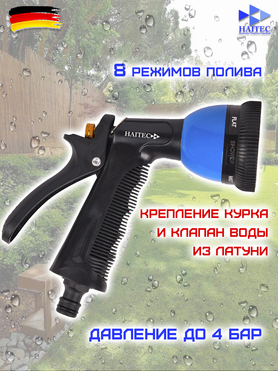 Пистолет-распылитель HAITEC HT-SP24, ABS пластик, латунный клапан, 8 режимов полива 780 ₽