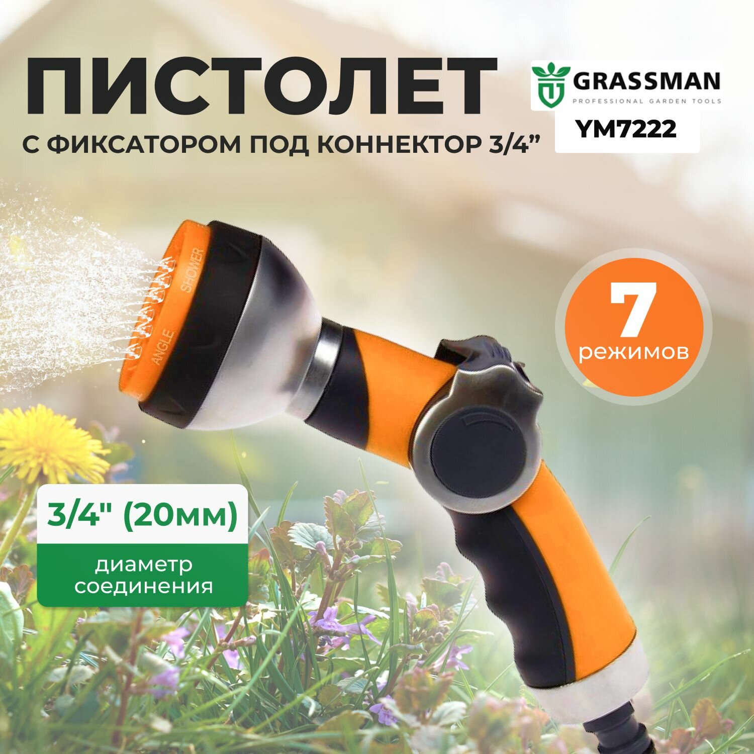 10 цен на Пистолет 7 режимов с фиксатором под коннектор 3/4" GRASSMAN YM7222
