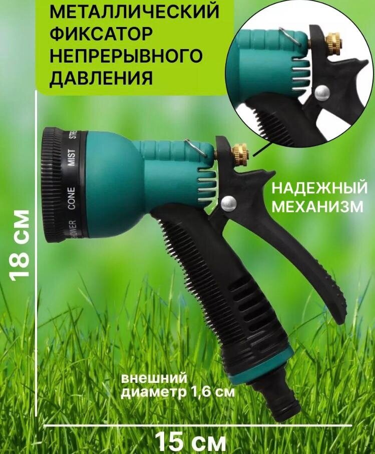 Отзывы на Пистолет поливочный , насадка на шланг , 8 режимов разбрызгивания , зеленый