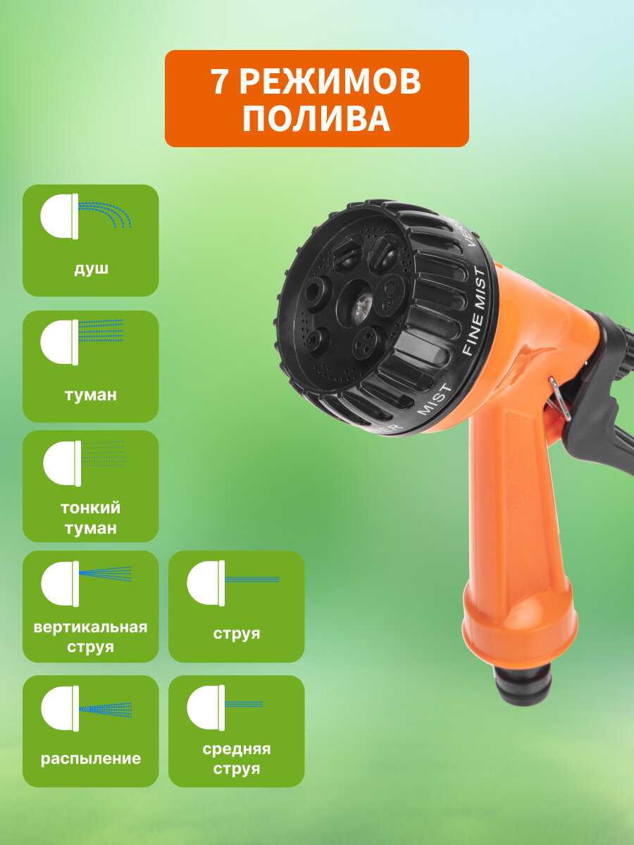 Пистолет для полива распылитель, 7 режимов ЧЕТЫРЕ СЕЗОНА, оранжевый информация: