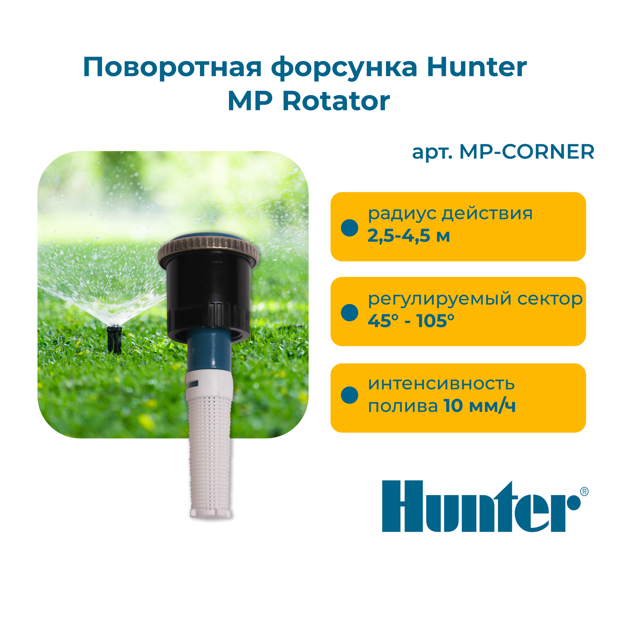 Отзывы на Форсунка Hunter MP Rotator MP CORNER сектор 45-105 градусов, радиус 2,4 - 4,5м