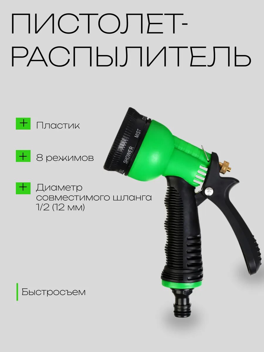 Пистолет для полива садовый, пластиковый, 8 режимов, быстросъем информация: