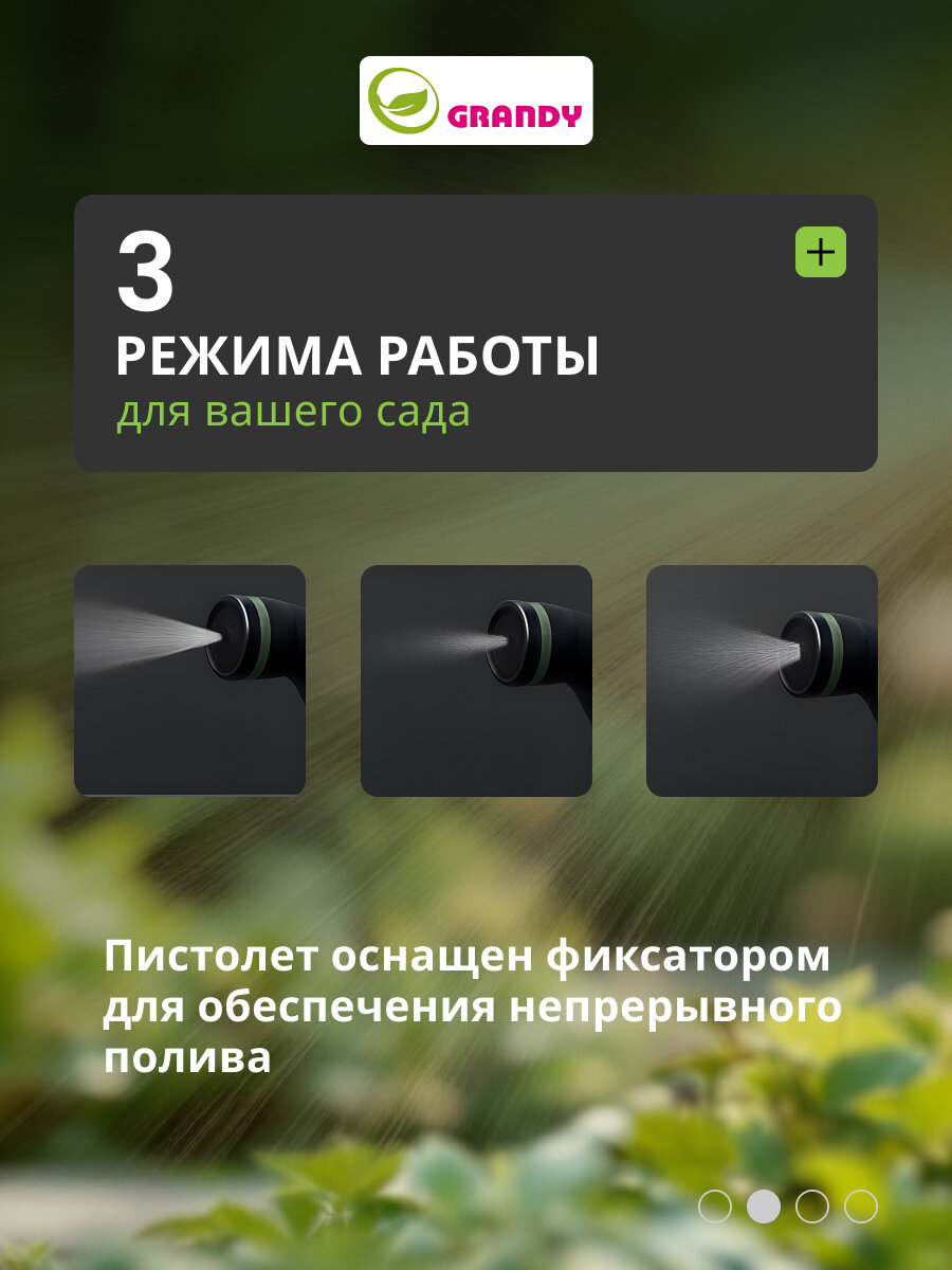 Grandy Пистолет поливочный на шланг для сада быстросъемный 3 режима информация: