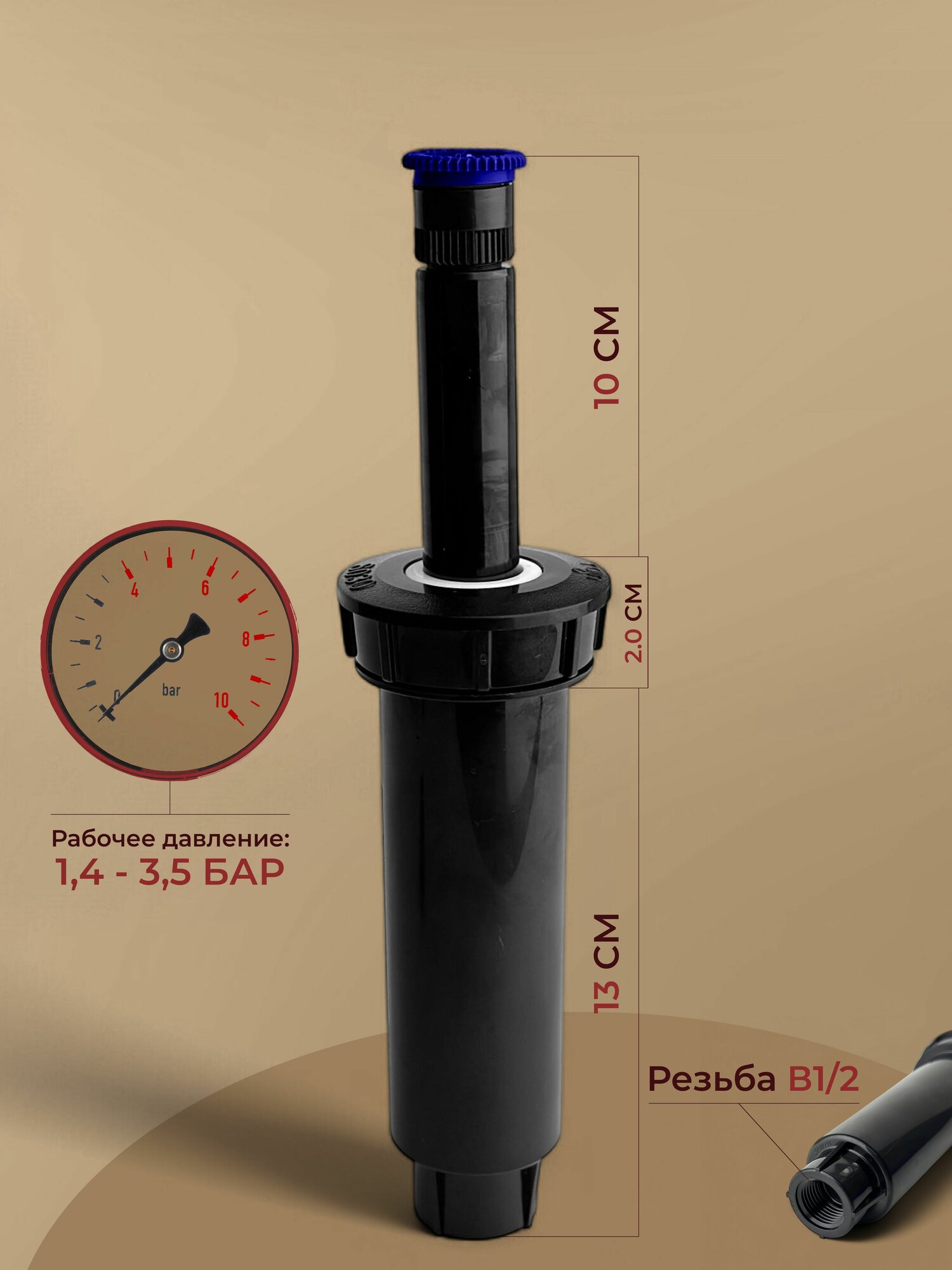 Дождеватель выдвижной секторный HS08-UN E, 1/2"ВР