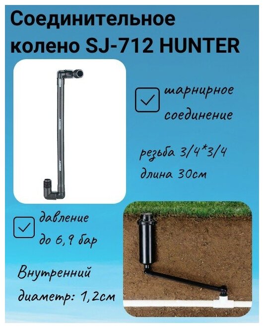 Соединительное колено HUNTER (30см) 3/4" х 3/4" (полив) информация: