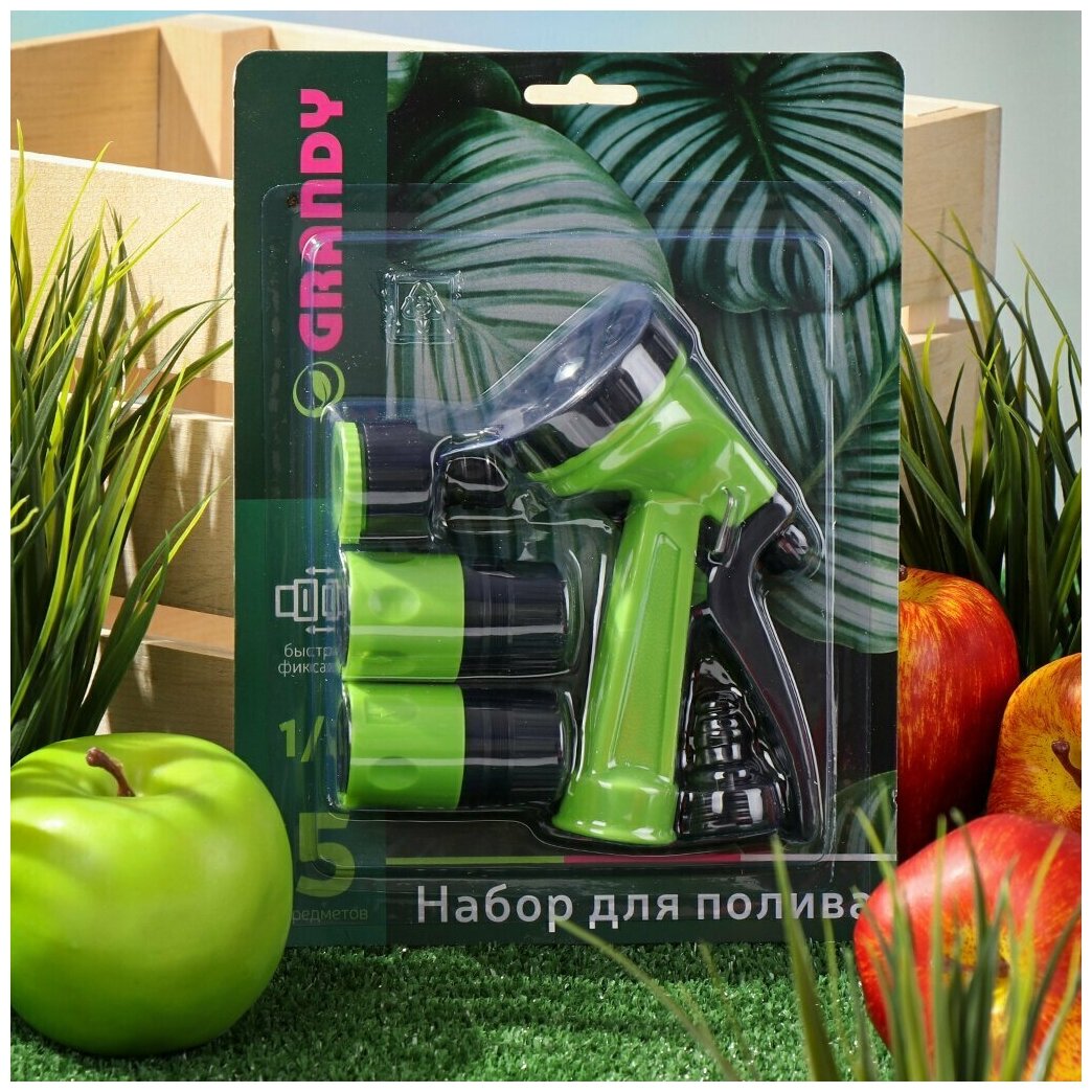 Набор для полива Grandy JS-9305, пистолет 5 режимов, фитинги информация: