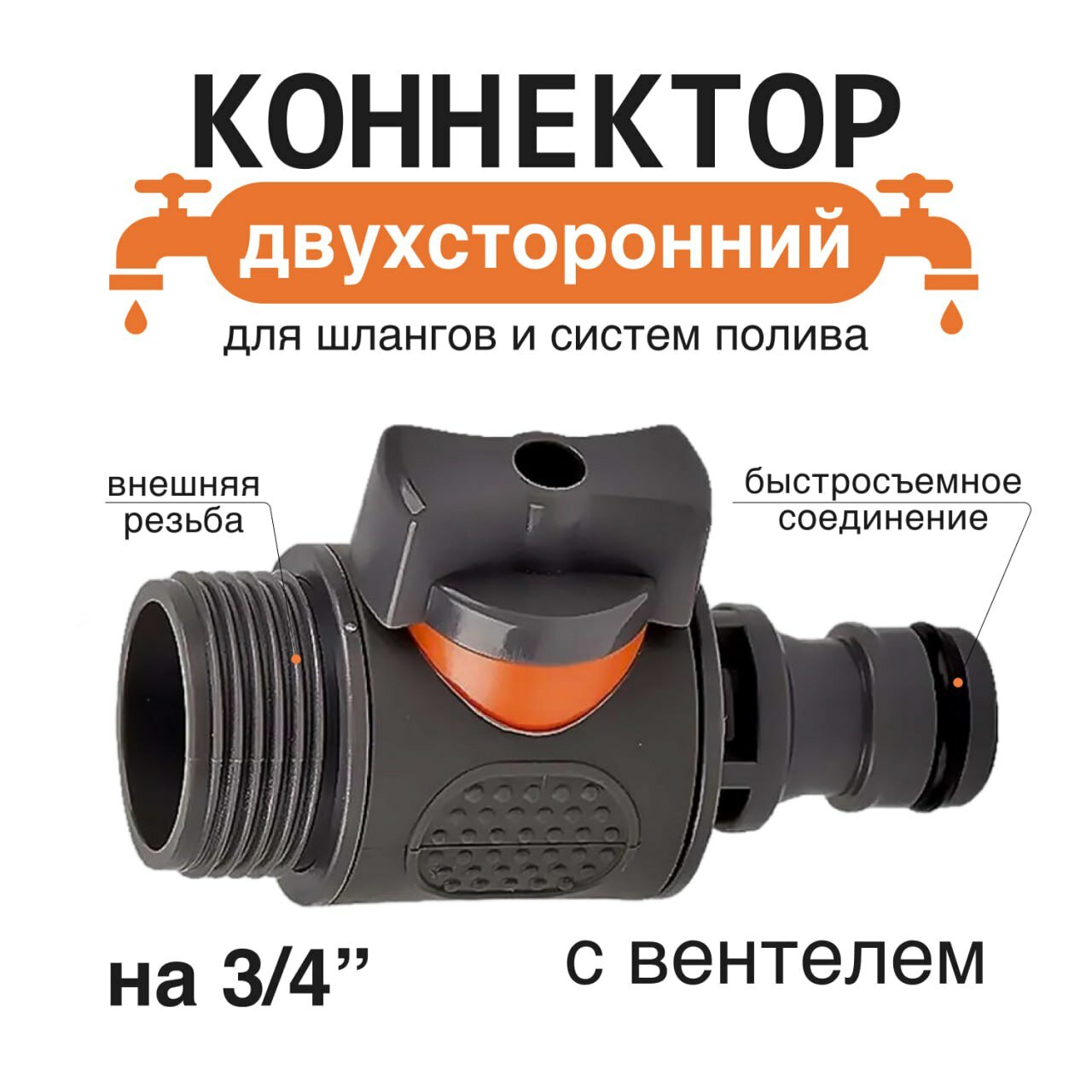 Отзывы на Коннектор для садового шланга, быстросъемный, с краном, диаметр 1", в упак. 1 шт