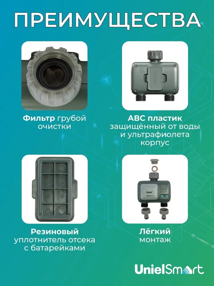 10 цен на Таймер для полива электронный двухканальный, автополив уличный для огорода и сада, WIFI, Bluetooth, Uniel.