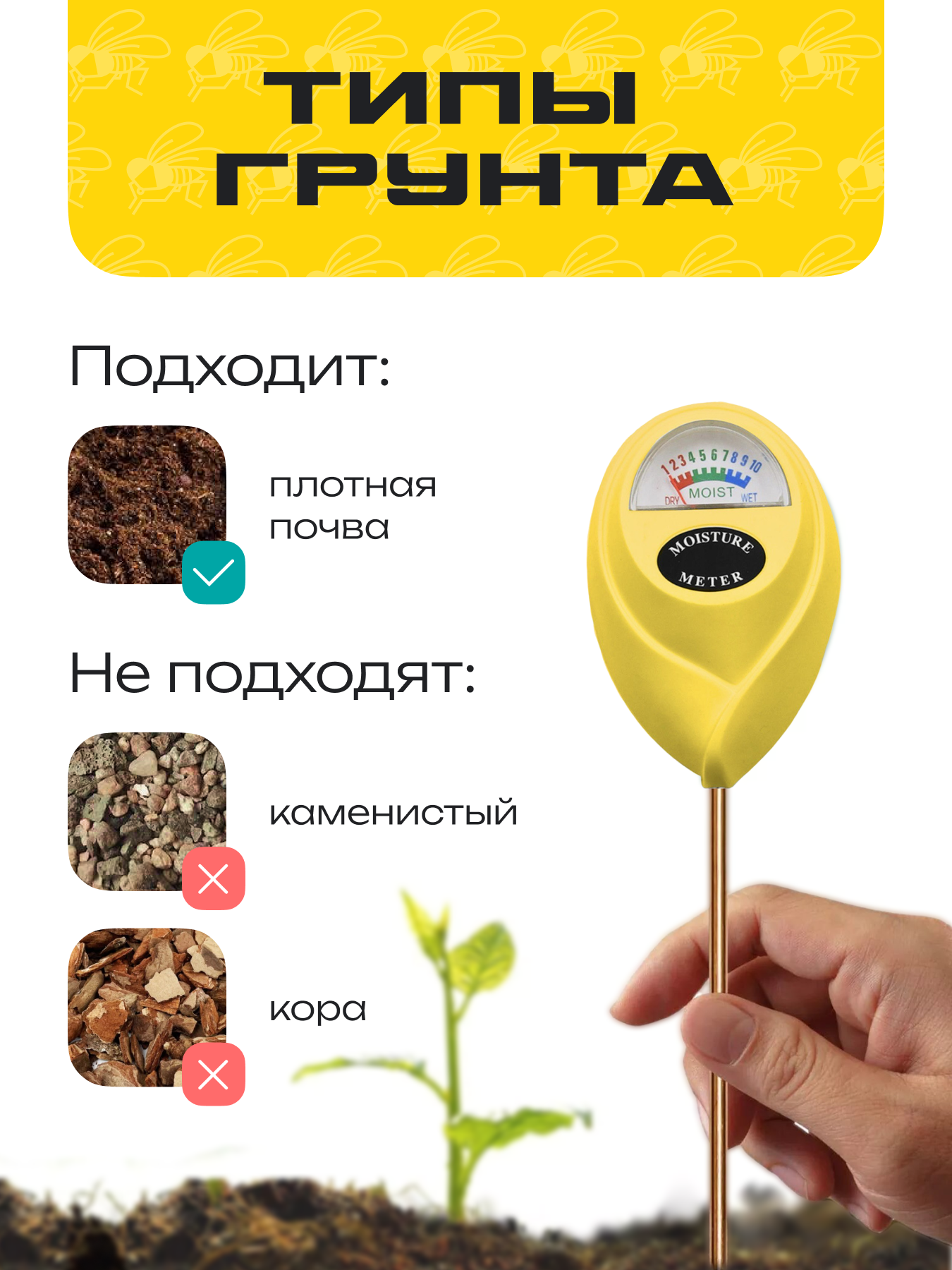 10 цен на Датчик измеритель влажности почвы, механический, желтый