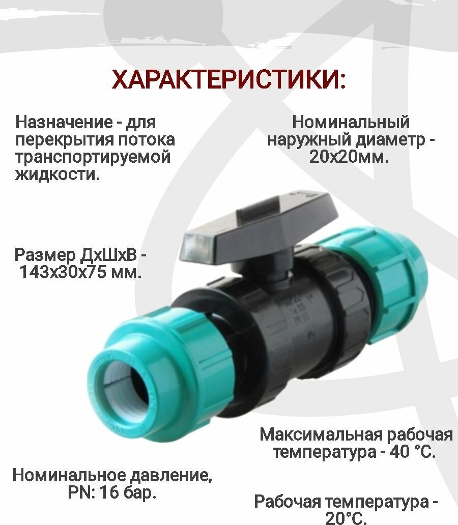 Кран шаровый компрессионный ПНД 20х20 (цанга-цанга), простой монтаж, удобная эксплуатация, для дачного полива и душа информация: