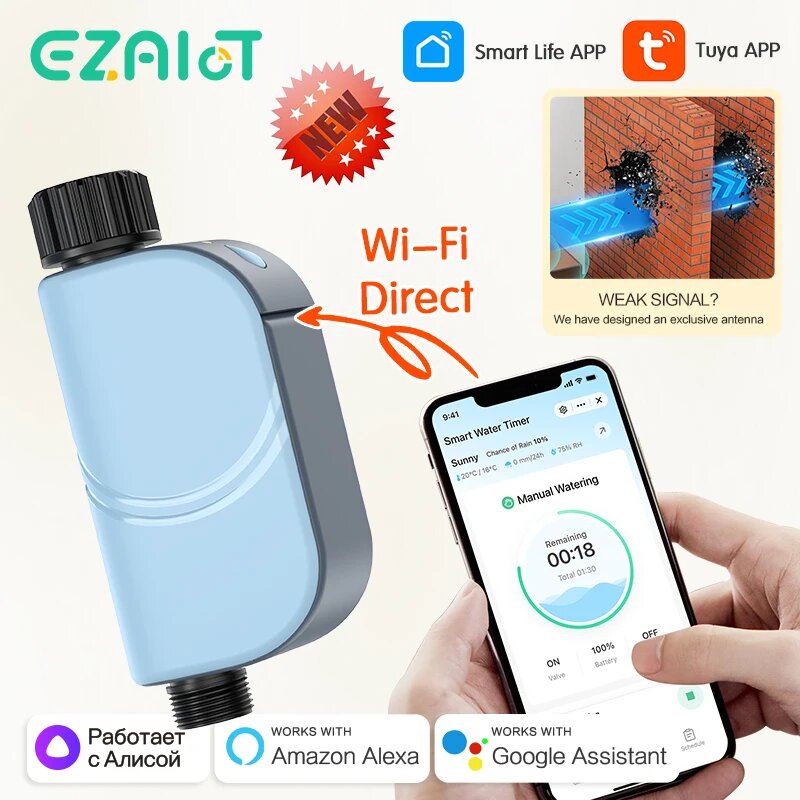 10 цен на Tuya WIFI умный садовый таймер для полива, Голубой