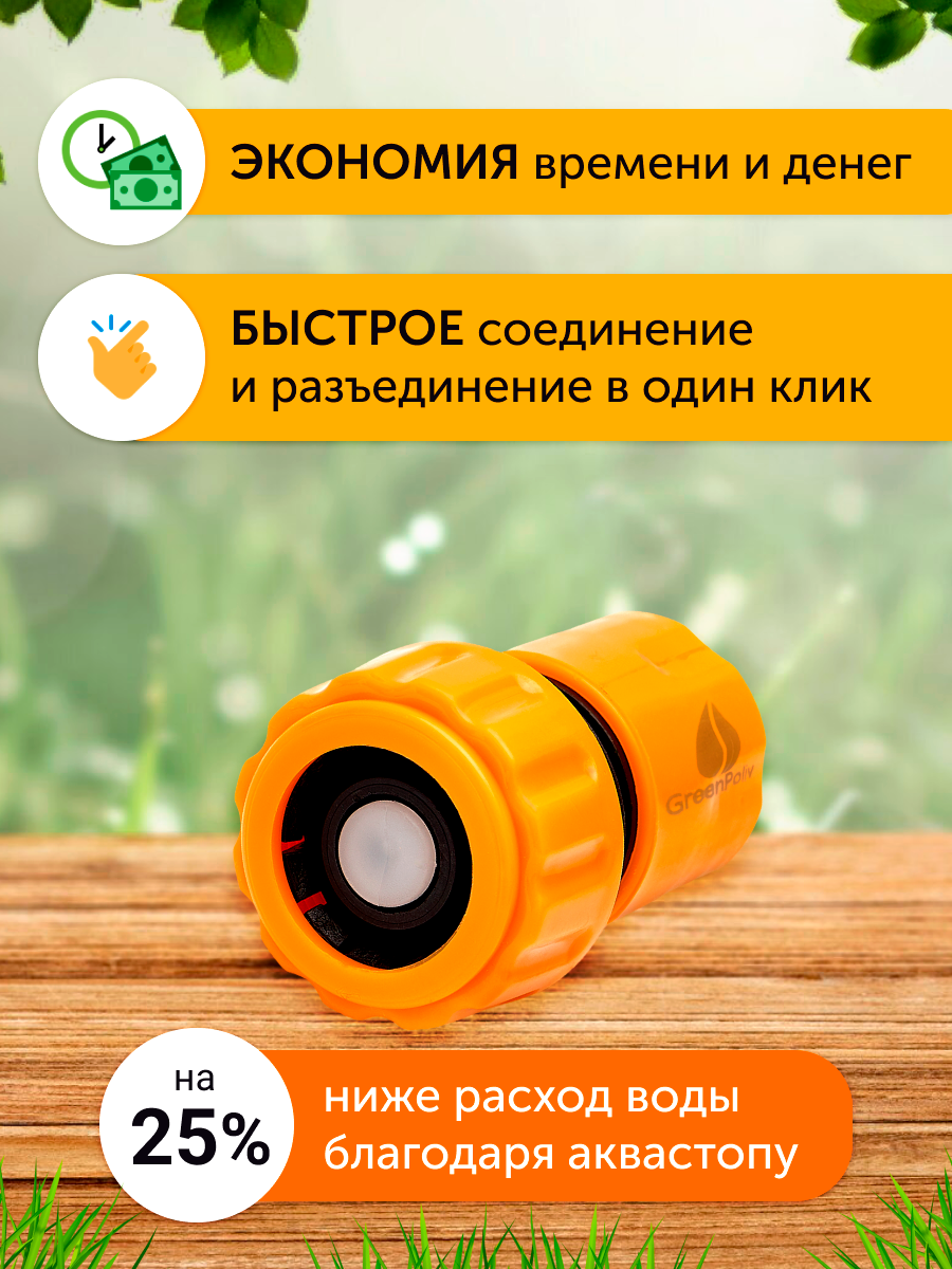 Отзывы на Коннекторы для шланга GreenPoliv 3/4, с аквастопом, быстросъемные, ABS-пластик, 6 шт и 2 соединителя