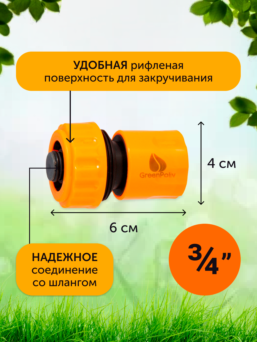 Коннекторы для шланга GreenPoliv 3/4, с аквастопом, быстросъемные, ABS-пластик, 6 шт и 2 соединителя информация: