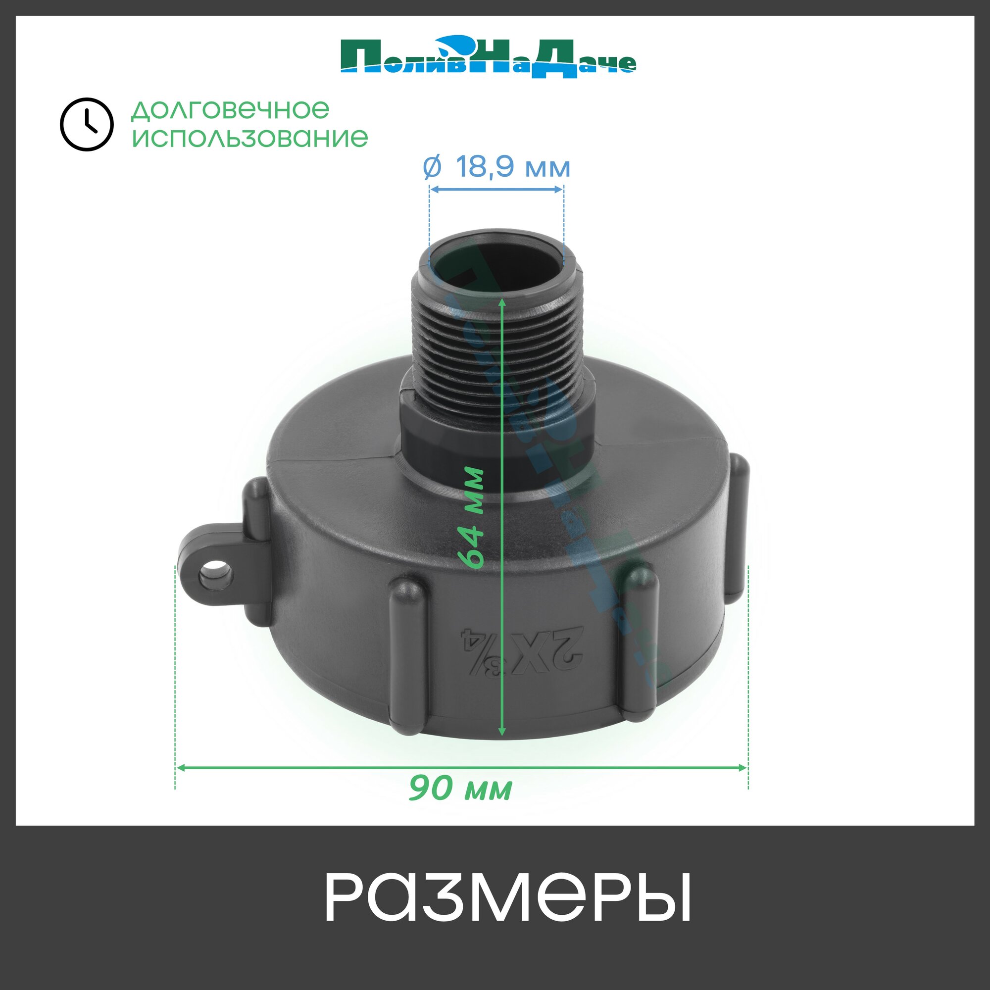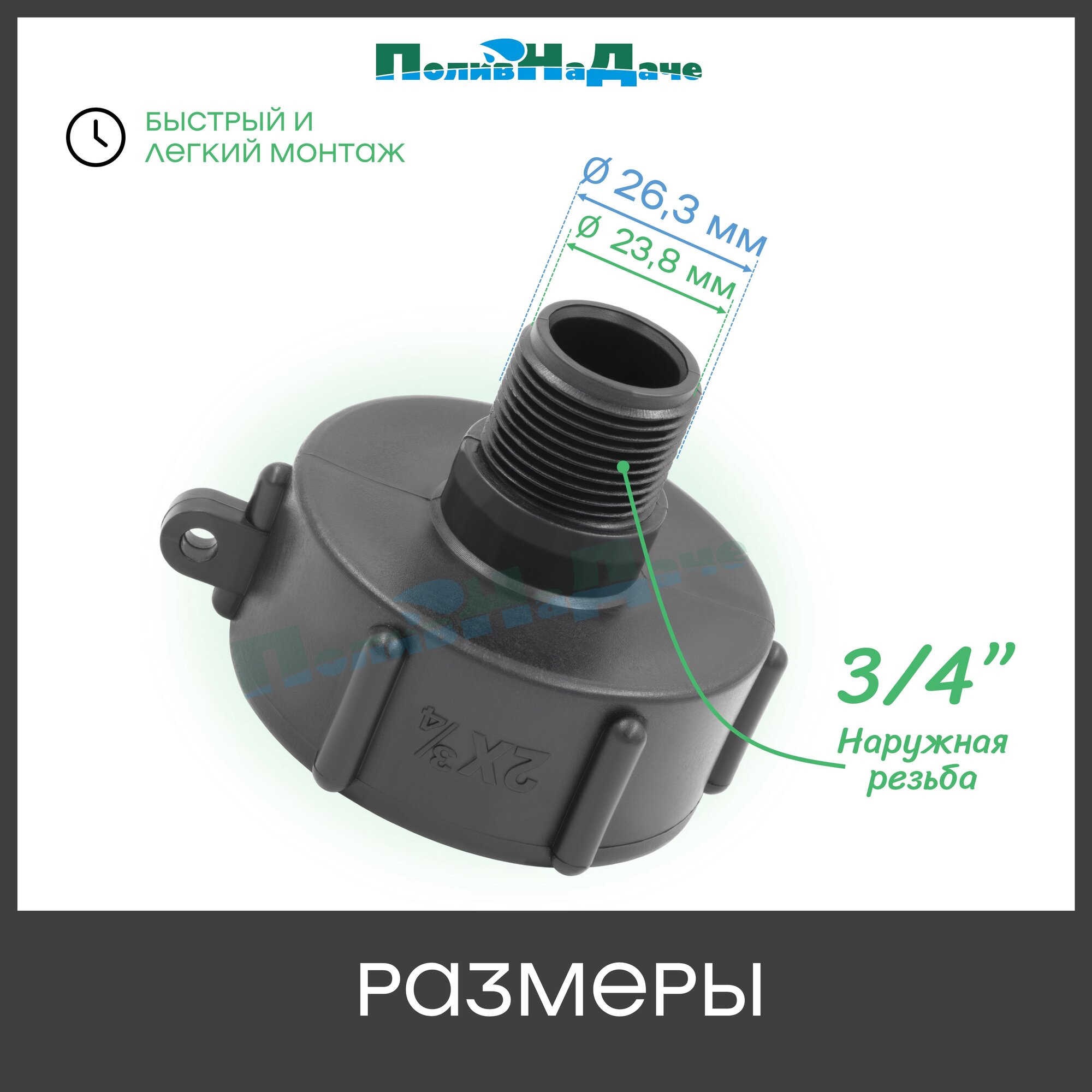 Переходник на еврокуб с крупной резьбой 2" (S60, внутр.) х 3/4" (нар.) - 1 шт. информация: