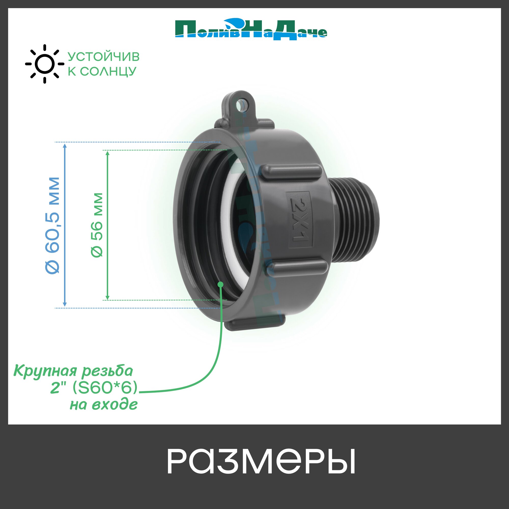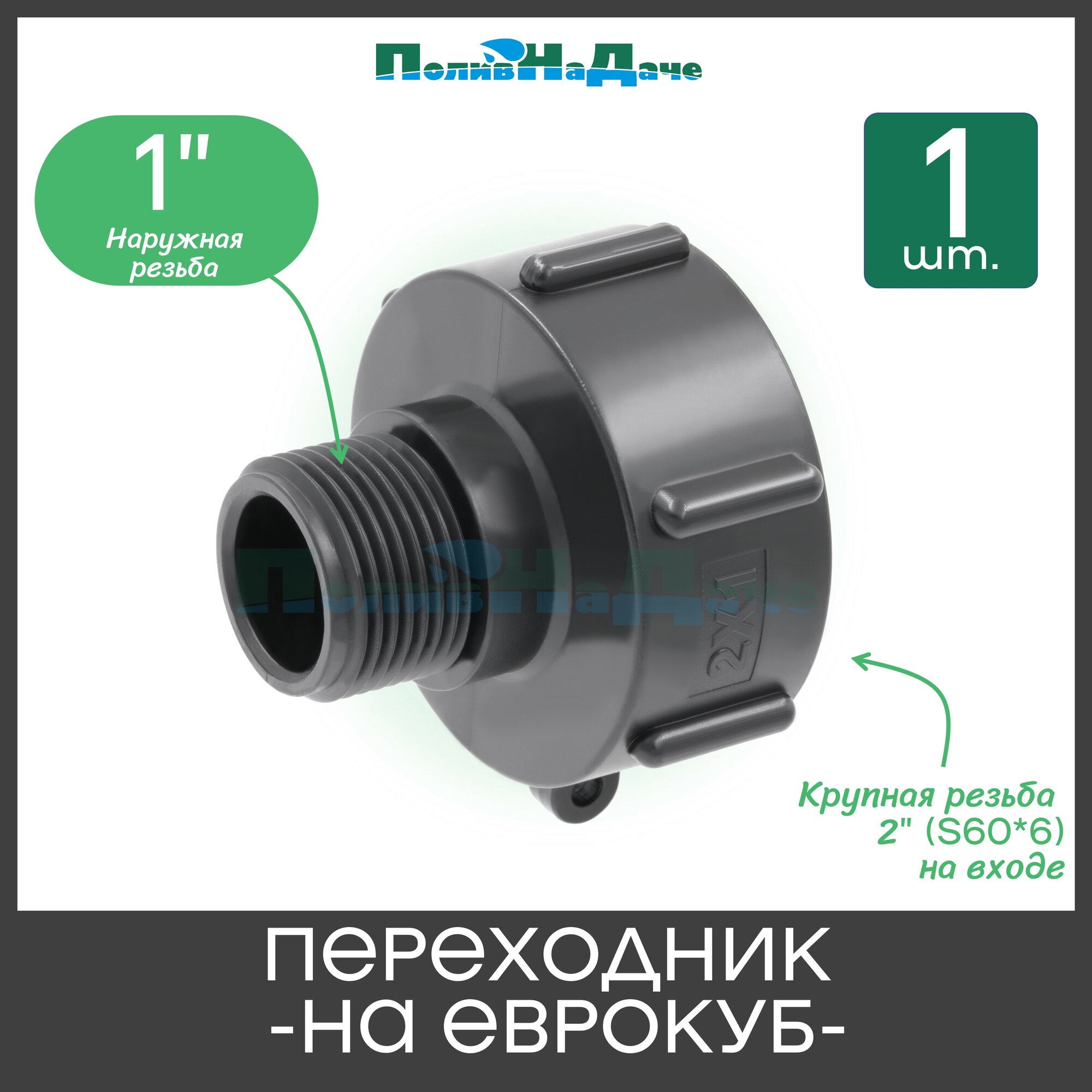 Переходник на еврокуб с крупной резьбой 2" (S60, внутр.) х 1" (нар.) - 1 шт. информация: