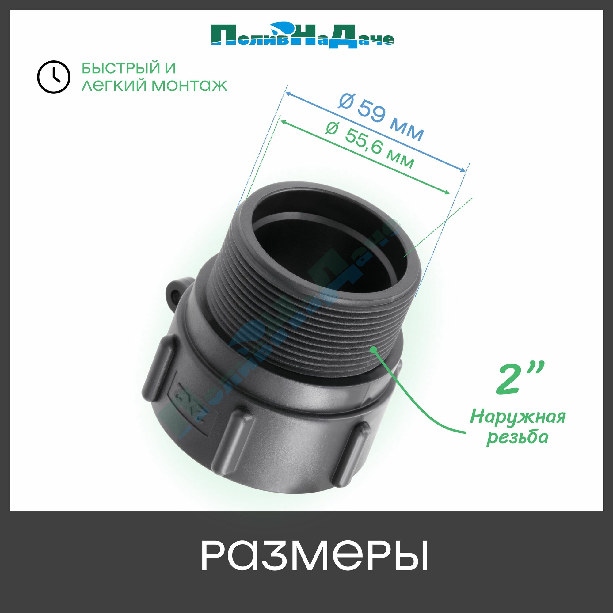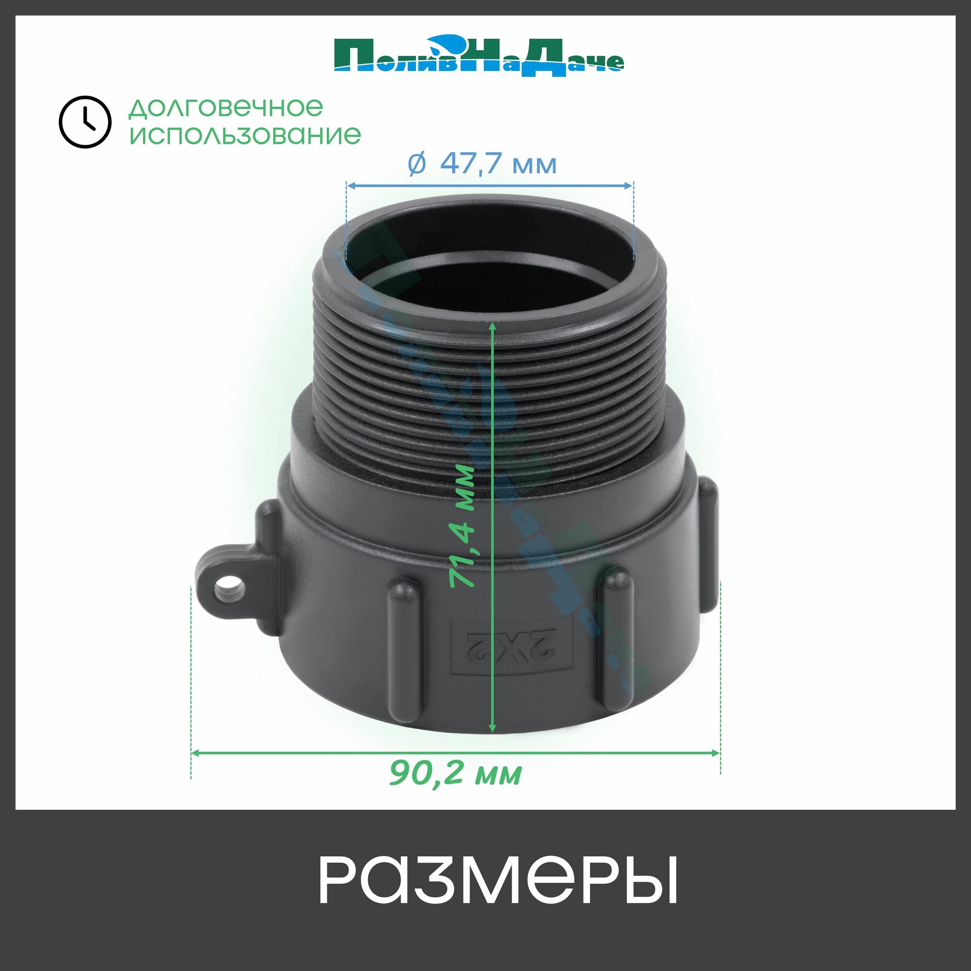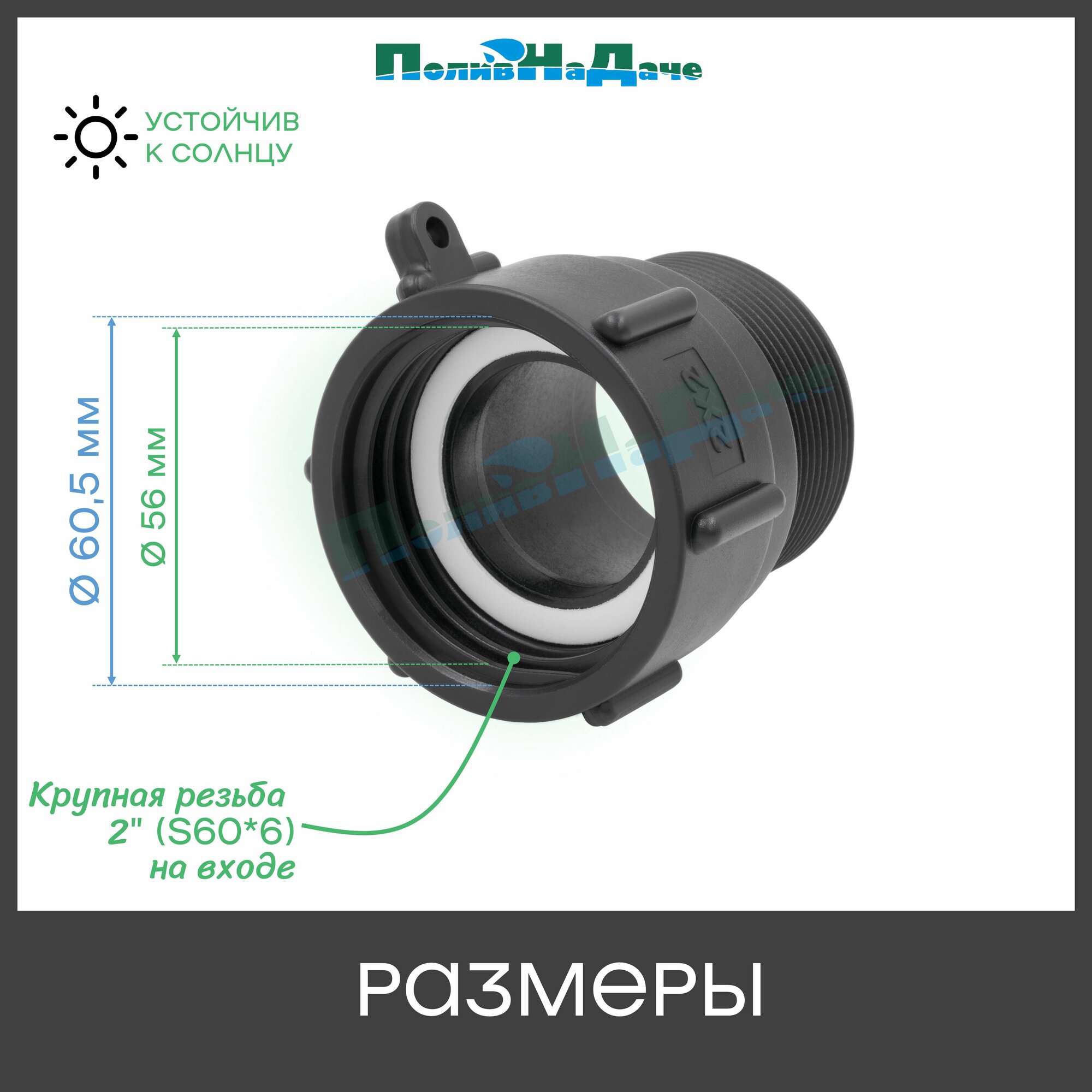 Отзывы на Переходник на еврокуб с крупной резьбой 2" (S60, внутр.) х 2" (нар.) - 1 шт.