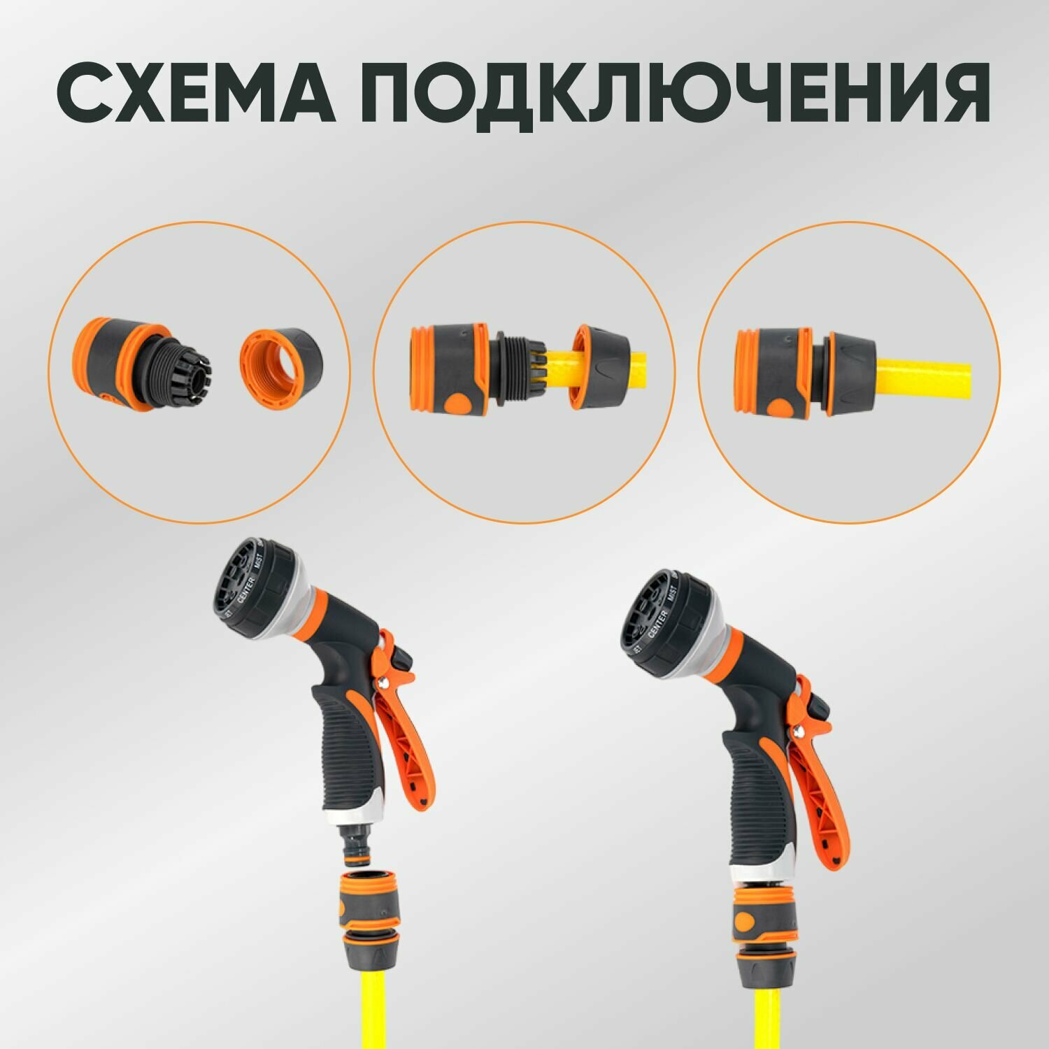Быстросъемный коннектор для шланга 3/4" / Переходник с прорезиненным покрытием/ Соединитель для шланга (3 штуки) информация: