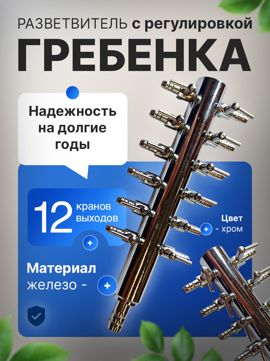 Разветвитель гребенка со штуцером и регулировкой, 12 выходов. информация: