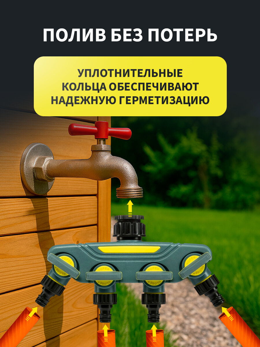 Отзывы на Разветвитель 4-канальный на кран 1/2"-3/4" Профи четыре сезона