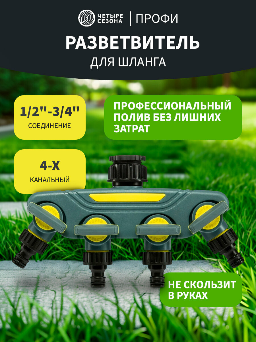Разветвитель 4-канальный на кран 1/2"-3/4" Профи четыре сезона информация:
