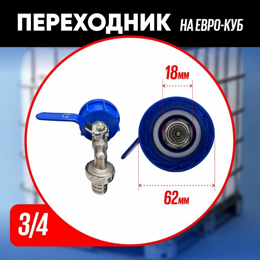 Переходник на еврокуб 3/4 18 мм кран шаровый / Крышка переходник на евро куб информация: