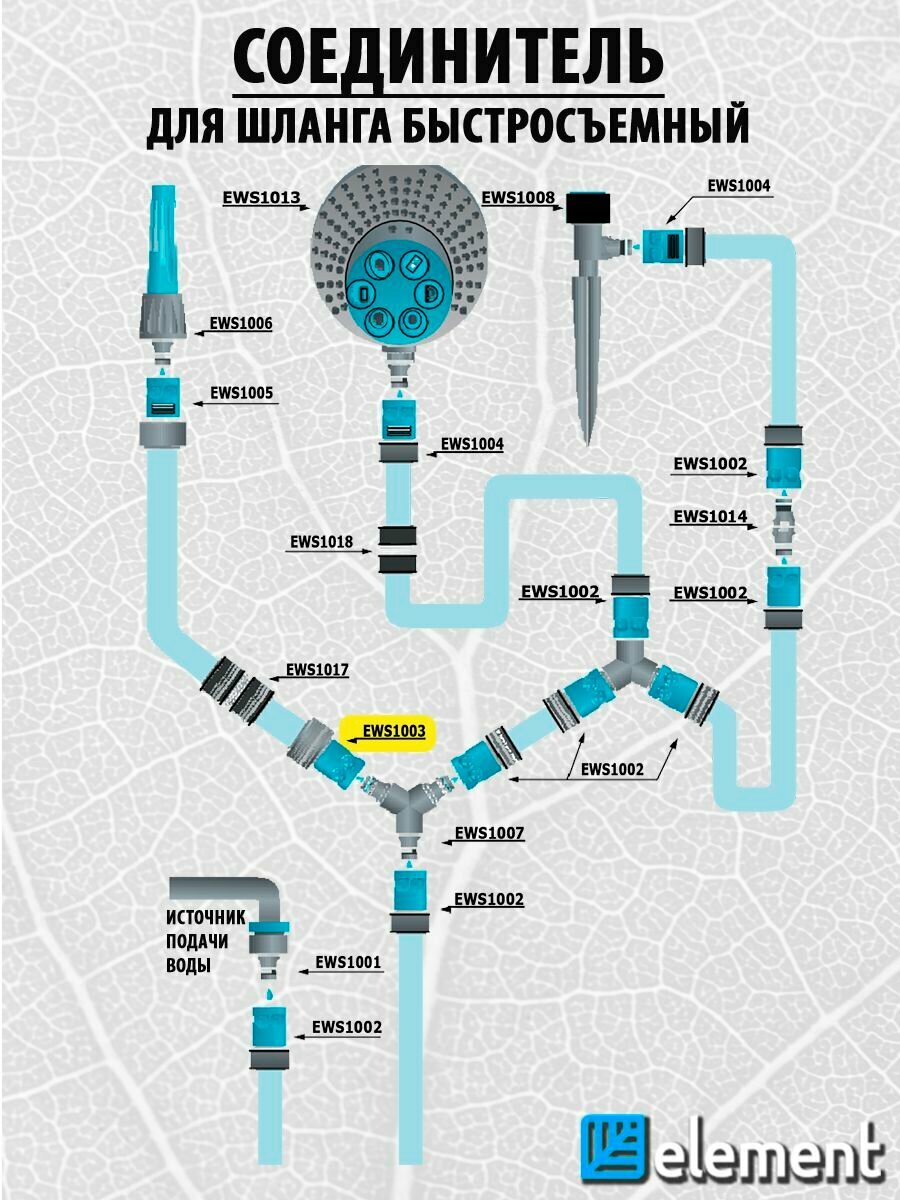 10 цен на Соединитель (коннектор шланг-насадка) 3/4", ударопрочный пластик, поливочный быстросъемный ELEMENT