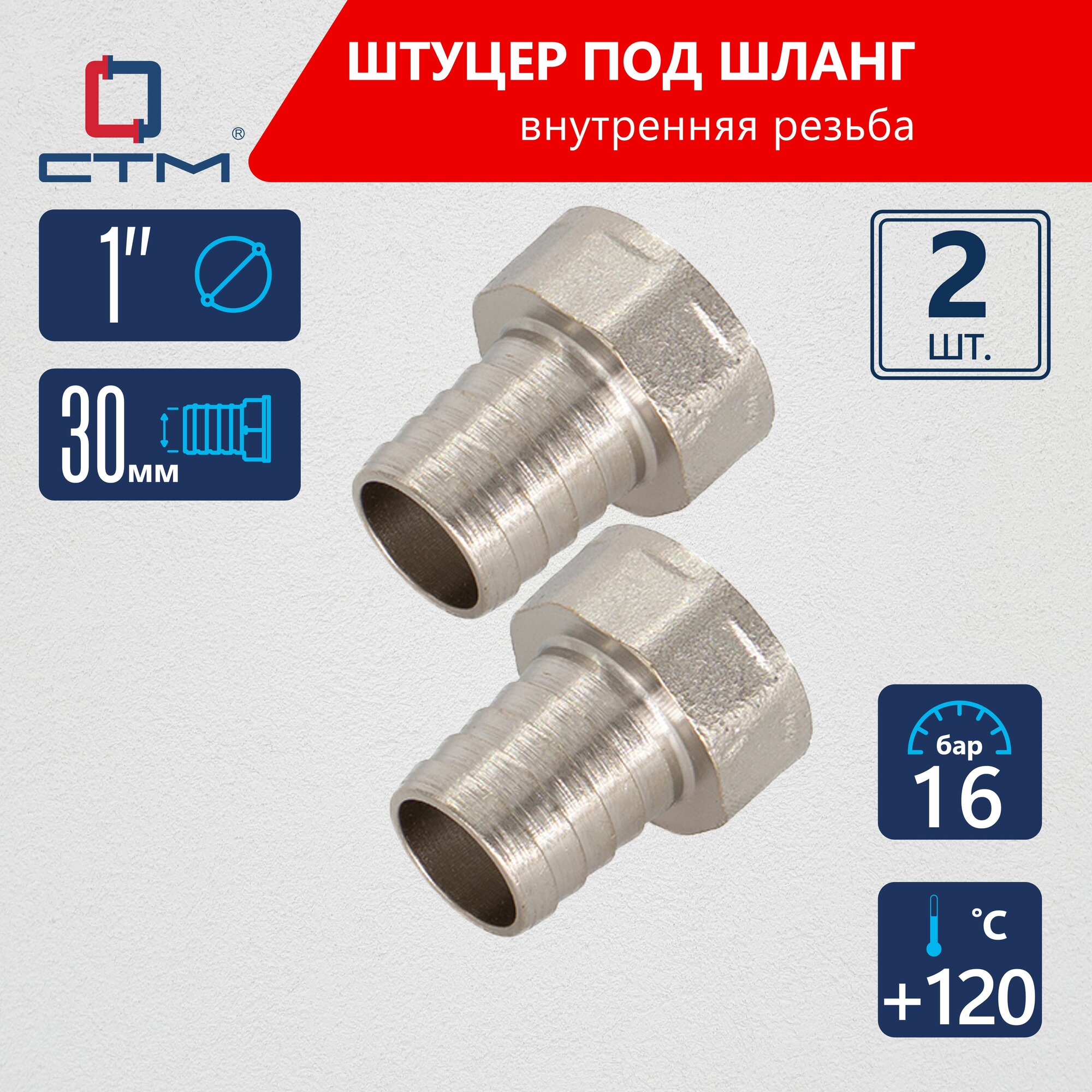 Штуцер 1"х30 мм для шланга с внутренней резьбой CTM латунь 2 шт информация: