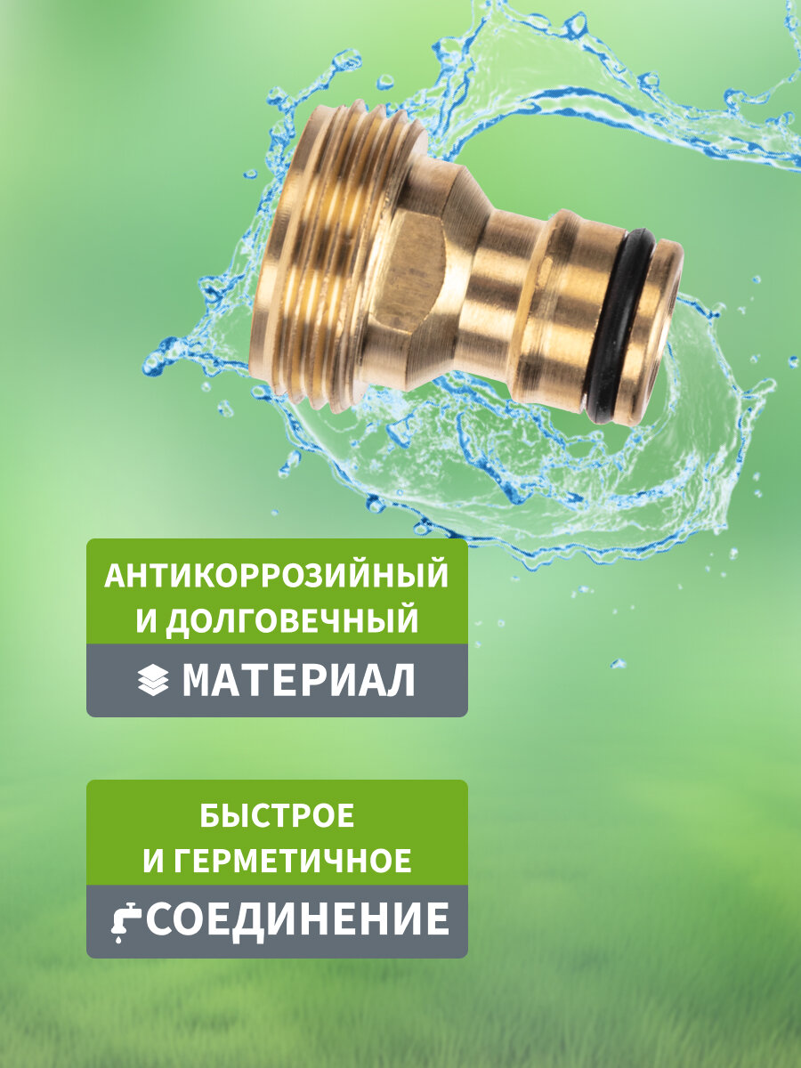 Адаптер для шланга штуцер латунный, 1/2"-3/4" с переходником четыре сезона 325 ₽