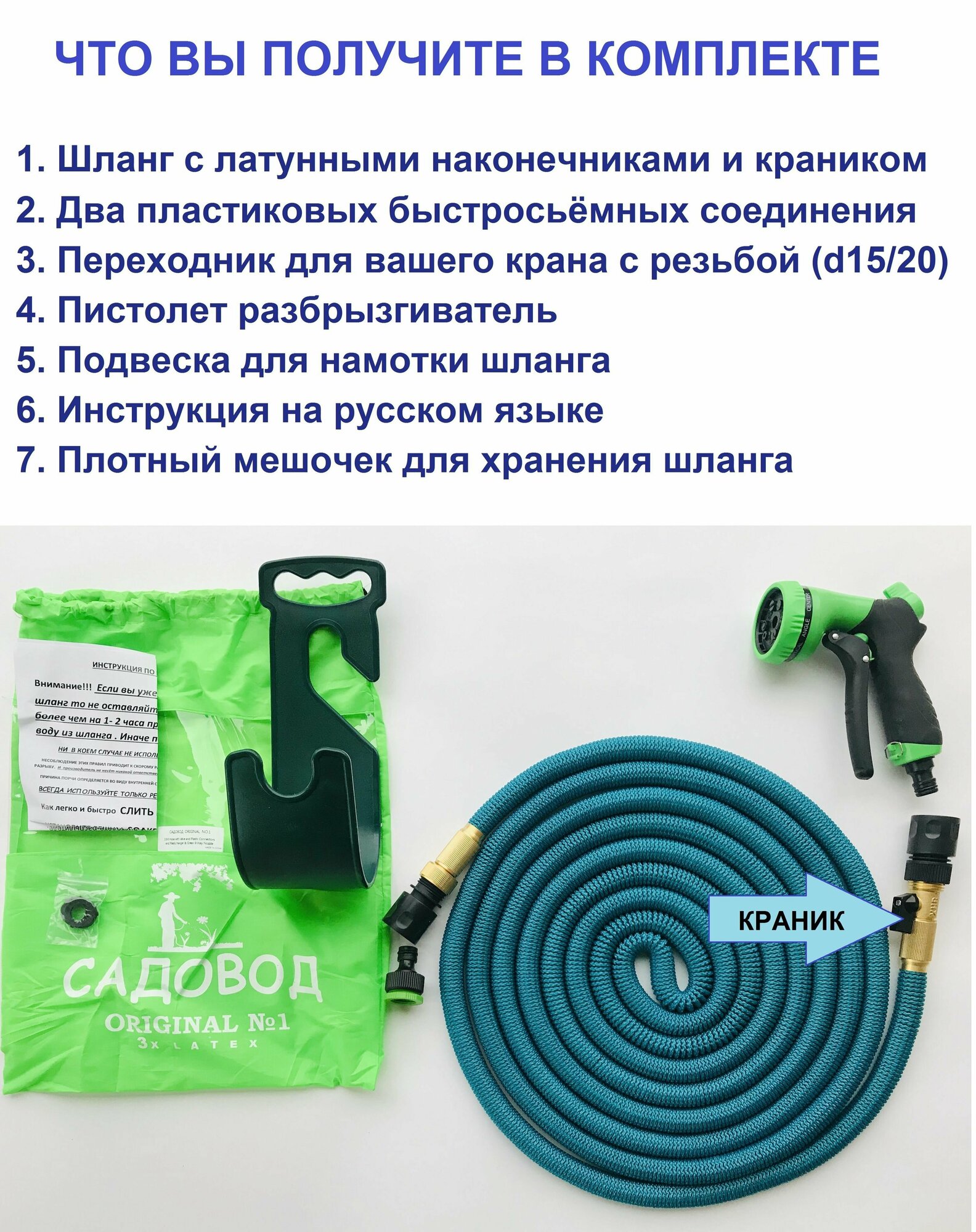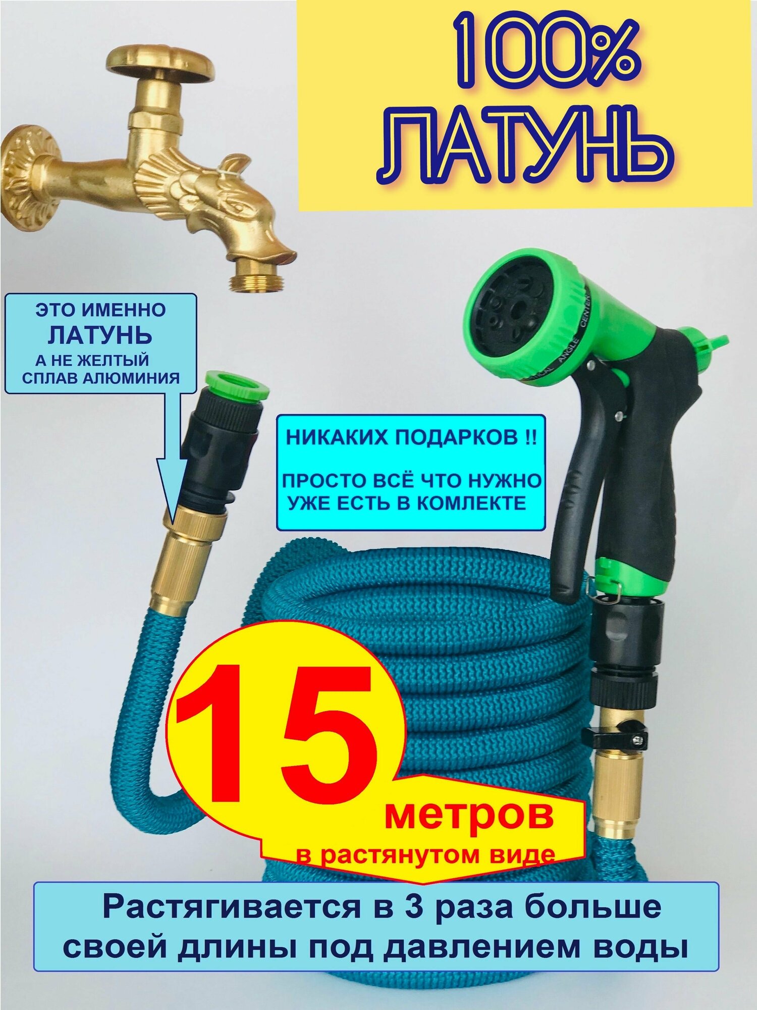 Шланг поливочный растягивающийся садовый 15 метров информация: